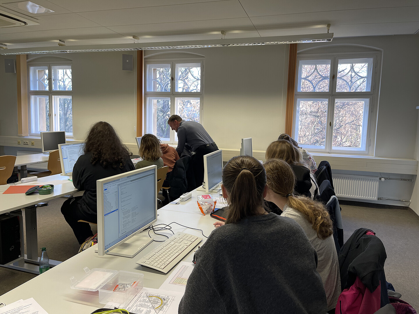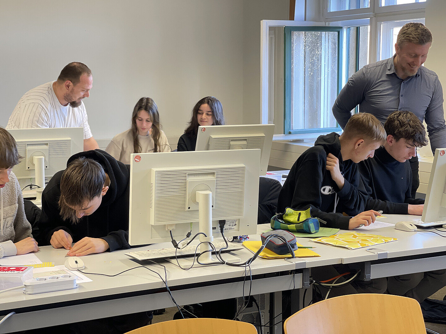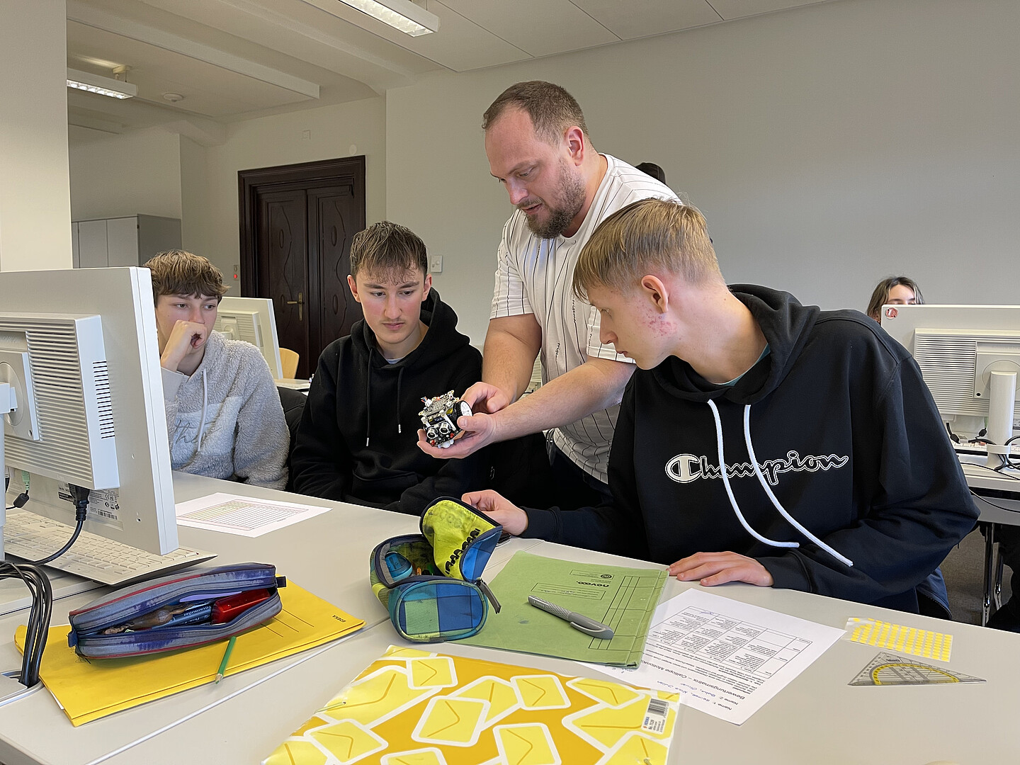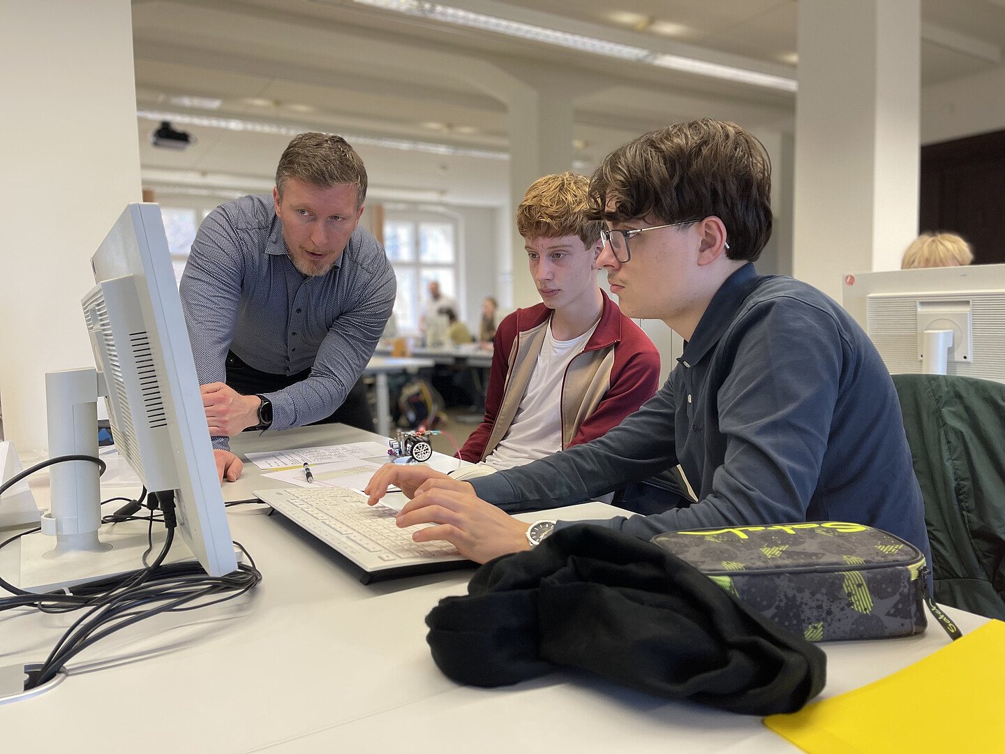 Gearbeitet wurde in kleinen Gruppen, in denen sich die Schülerinnen und Schüler gegenseitig unterstützten, Fehler analysierten und Lösungsstrategien diskutierten. Zwei Lehrkräfte der Fakultät begleiteten den Kurs und standen mit fachkundigem Rat zur Seite. Die Begeisterung war groß, als die Roboter ihre ersten Parcours erfolgreich meisterten. Gelächter, Jubelrufe und stolze Gesichter inklusive.