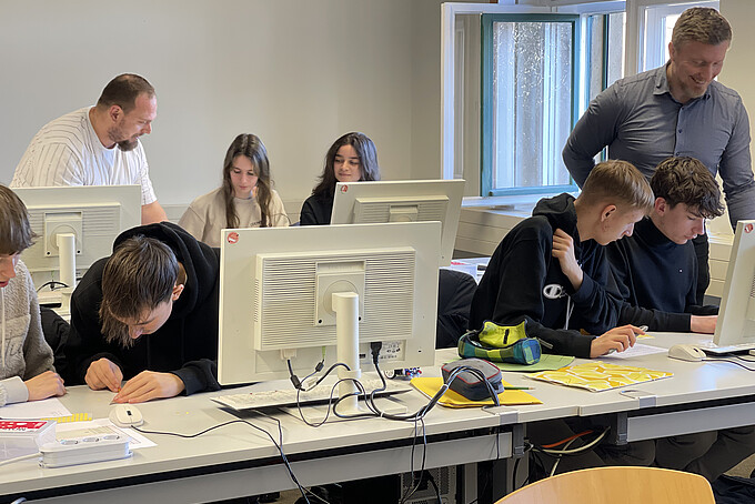 Statt auf die übliche Blockprogrammierung zu setzen, arbeiteten die Jugendlichen von Beginn an mit der weit verbreiteten Programmiersprache Python. Um den Einstieg zu erleichtern, entwickelte das Hochschulteam eine virtuelle Calliope-Umgebung für Jupyter-Notebooks. In dieser gesicherten Umgebung konnten erste Programme geschrieben, getestet und verstanden werden, bevor sie auf den echten Mikrocontroller übertragen wurden.