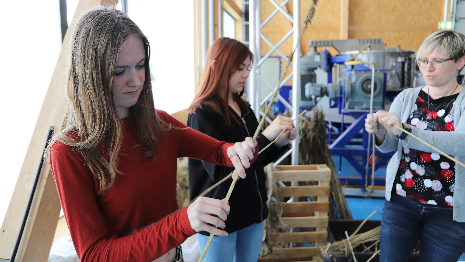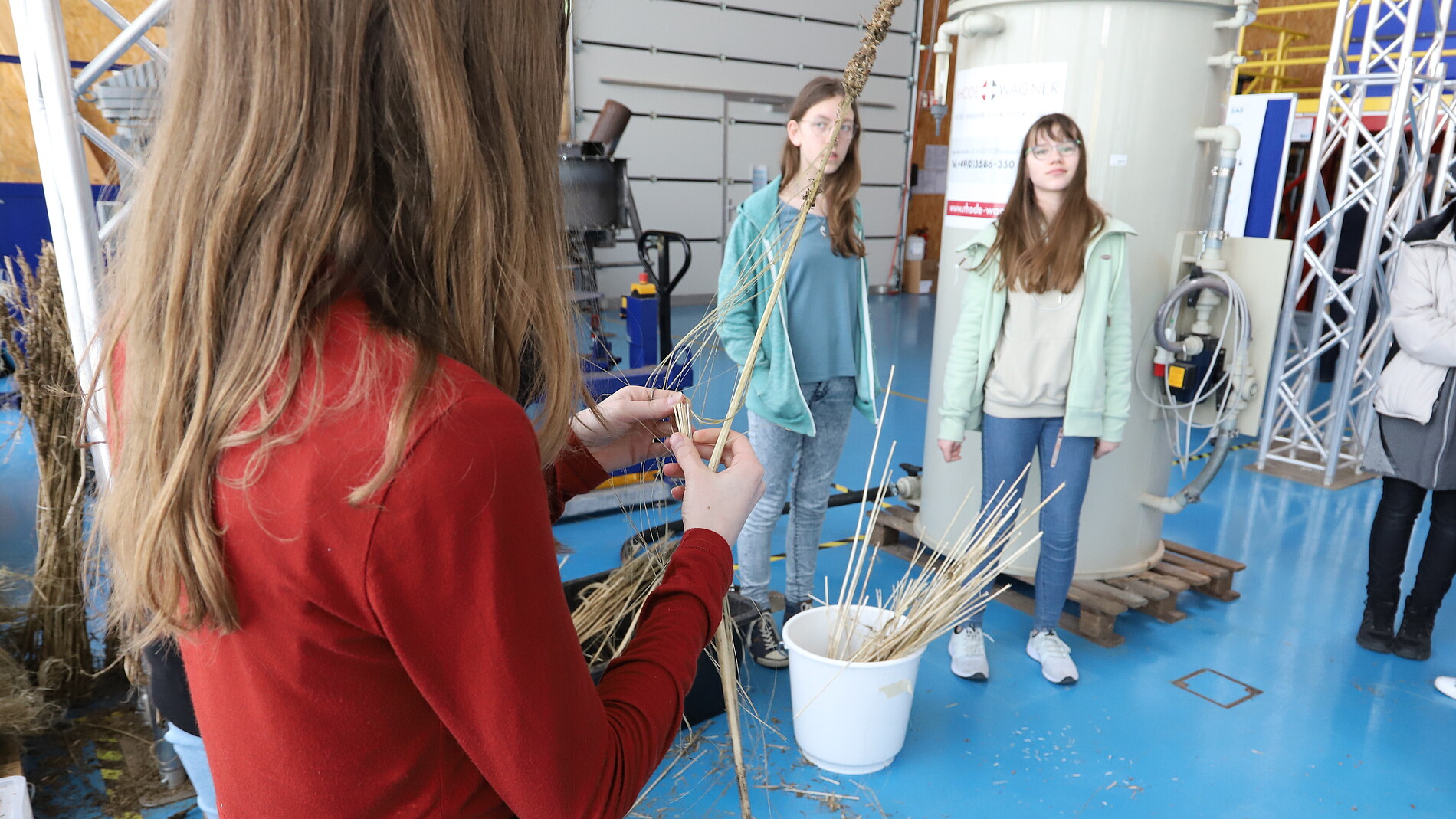 Im Anschluss wurde den interessierten Schülerinnen im Naturfaserzentrum LaNDER³ demonstriert, wie man zukünftig mit dem, was die Natur hergibt, leben und produzieren kann und wie man dabei unsere Umwelt schont. Helene und Arna, beide Klasse 7 aus Löbau, fanden es besonders spannend zu sehen, wie aus Pflanzen biologisch abbaubares Einweggeschirr oder Bauteile für Züge hergestellt werden kann. Abschließend blickten alle Beteiligten beim gemeinsamen Mittagessen in der Mensa mit der Prorektorin und Studienberater Lukasz Witków auf einen aufregenden Tag zurück.