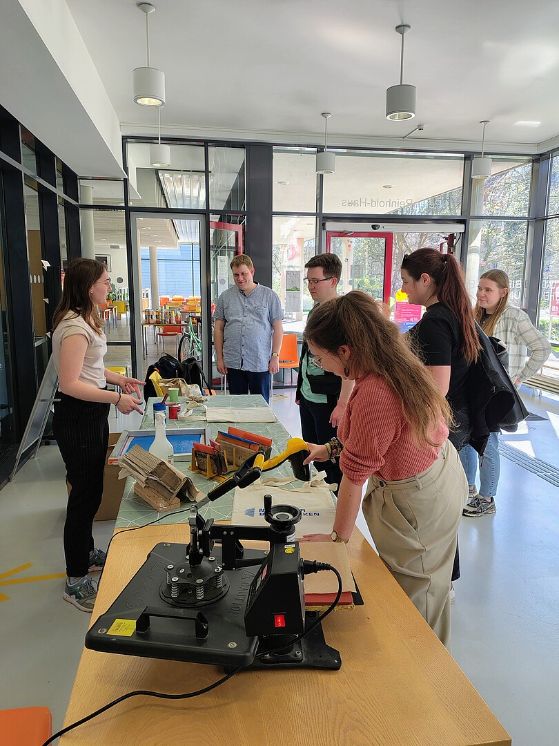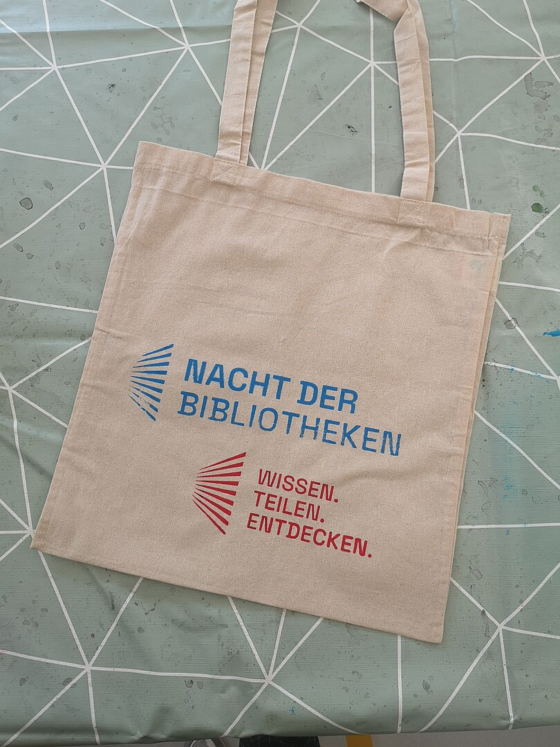 Ein kreatives Highlight in Görlitz war die Siebdruckstation, bei der Stoffbeutel mit dem offiziellen Logo der „Nacht der Bibliotheken“ bedruckt werden konnten. Ein herzlicher Dank geht an die Rabryka für die Gestaltung der Druckvorlage und die Bereitstellung des Materials.