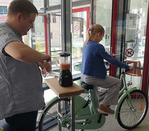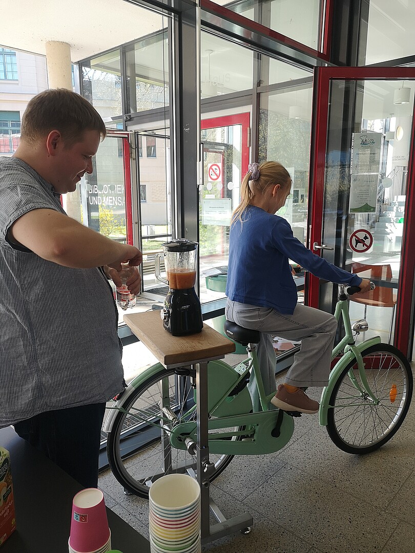 Besonderer Publikumsliebling am Standort Görlitz war das Smoothie-Bike – ein umgebautes Fahrrad mit Mixer, bei dem Besucher*innen durch kräftiges Strampeln ihren eigenen Smoothie herstellen konnten. In Zittau sorgte die studentische DeziBar für Verpflegung und Getränke.