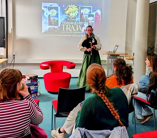 Das absolute Highlight des Görlitzer Abends war die Lesung mit Kathi Stayn, einer Autorin aus Zittau. Sie stellte ihren ersten Roman „Verborgenes Traja“ vor und gab persönliche Einblicke in ihren Weg von der ersten Idee bis zum fertigen Buch. Ihre authentische Erzählweise begeisterte das Publikum und machte den Abend zu einem ganz besonderen Erlebnis.