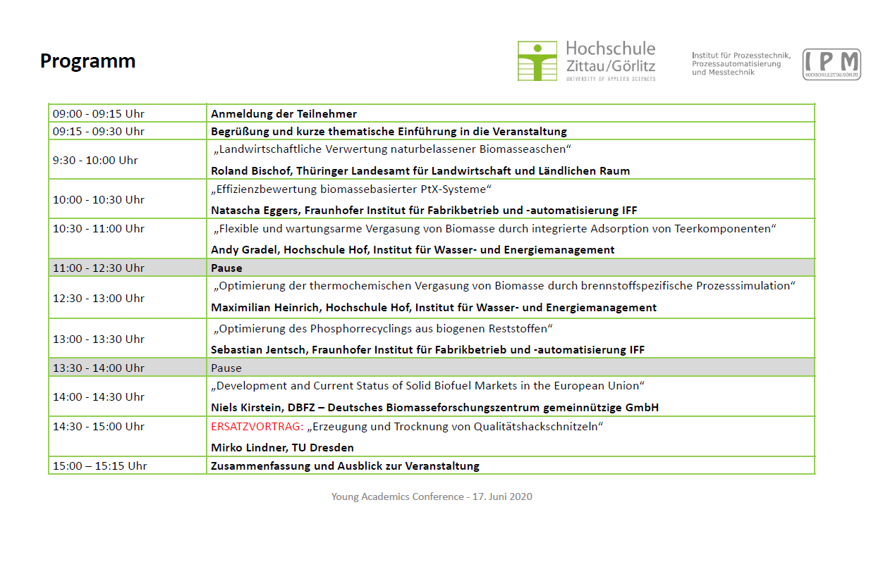 Als 3-tägige Konferenz sollte ursprünglich die 25. FACHTAGUNG "Nutzung nachwachsender Rohstoffe – Biomass to Power and Heat" vom 17.-19. Juni 2020 in Zittau stattfinden.