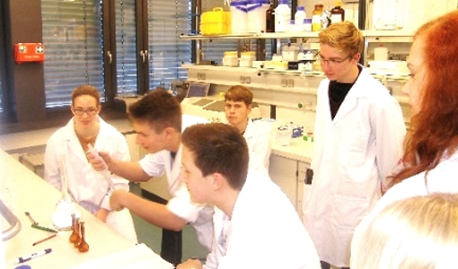 Anfang Dezember fand in den Laboren Bioverfahrenstechnik und Mikrobiologie der Hochschule Zittau/Görlitz eine weitere Veranstaltung im Rahmen der Schülerakademie zum Thema „Fermentation von Saccharomyces cerevisiae“ statt. Die von verschiedenen Gymnasien (Löbau, Bautzen Hoyerswerda, Zittau, Wilthen) aus dem Gebiet der Sächsischen Bildungsagentur, Regionalstelle Bautzen angereisten Schüler und Schülerinnen konnten die Fermentation von Backhefe selbst ausführen. Dazu wurde im Rahmen des Versuches ein Bioreaktor (Fermenter) durch die Teilnehmer in Betrieb genommen und das Wachstum der Hefen unter Variation der Prozessbedingungen beobachtet. Begleitend zu dem Versuch konnten die Teilnehmer anhand der selbst entnommenen Proben die Konzentration der Mikroorganismen durch verschiedenen Analysen bestimmen, und die Vitalität der Zellen durch eine fluoreszenzmikroskopische Betrachtung nach vorausgegangener Färbung selbst beurteilen. Weiterhin führten die Teilnehmer chemische Analysen mittels Farbnachweisreaktion zur Bestimmung von Glukosegehalten selbst durch. Die Schülerinnen und Schüler erhielten einen Einblick in den Laboralltag und stellten dabei selbst Medien her, fertigten Verdünnungsreihen an, versuchten sich im Pipettieren, Zentrifugieren und an Extinktionsmessungen. Das notwendige Wissen wurde dabei durch die betreuenden Hochschulmitarbeiter vor Ort Schritt für Schritt vermittelt und zahlreiche Fragen beantwortet. Ein kleiner Imbiss in einer netten Gesprächsrunde rundete die Veranstaltung zu einem gelungenen Event ab.