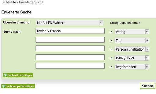 Wir hoffen, dass dieses besondere Angebot rege angenommen wird. Bis Ende 2018 wird ein Teil der meistgenutzten E-Books gekauft und damit auch dauerhaft für uns nutzbar werden. Die freigeschalteten E-Books sind über unseren Katalog recherchierbar. Nutzen Sie ggf. die Erweitere Suche für „Taylor & Francis“, „CRC Press“ bzw. „Routledge“ im Suchfeld „Verlag“. Schränken Sie anschließend auf "E-Book" ein und sortieren Sie dann nach "Erscheinungsjahr, absteigend". Dadurch erhalten Sie die Nachweise der aktuellen elektronischen Bücher mit ihren Links zum PDF als Buchkapitel oder dem gesamten Buch.
