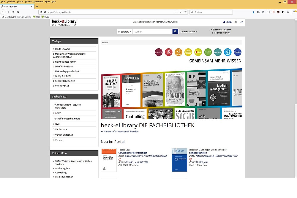 Es stehen ca. 200 Buchtitel aus den Fachgebieten Volks- und Betriebswirtschaftslehre, Finanzen, Personalmanagement, Wohnungswirtschaft, Marketing und Management zur Verfügung. Die Titel sind alle im Katalog online zu finden. Wenn Sie einfach nur mal stöbern wollen, dann gehen Sie auf unserer Homepage unter Elektronische Medien auf die Seite der beck-eLibrary.