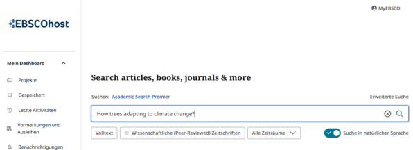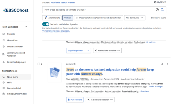 Bei den EBSCO-Datenbanken, u.a. Academic Search Premier, Business Source Premier und CINAHL with Full Text wurden neue KI-Features freigeschaltet.