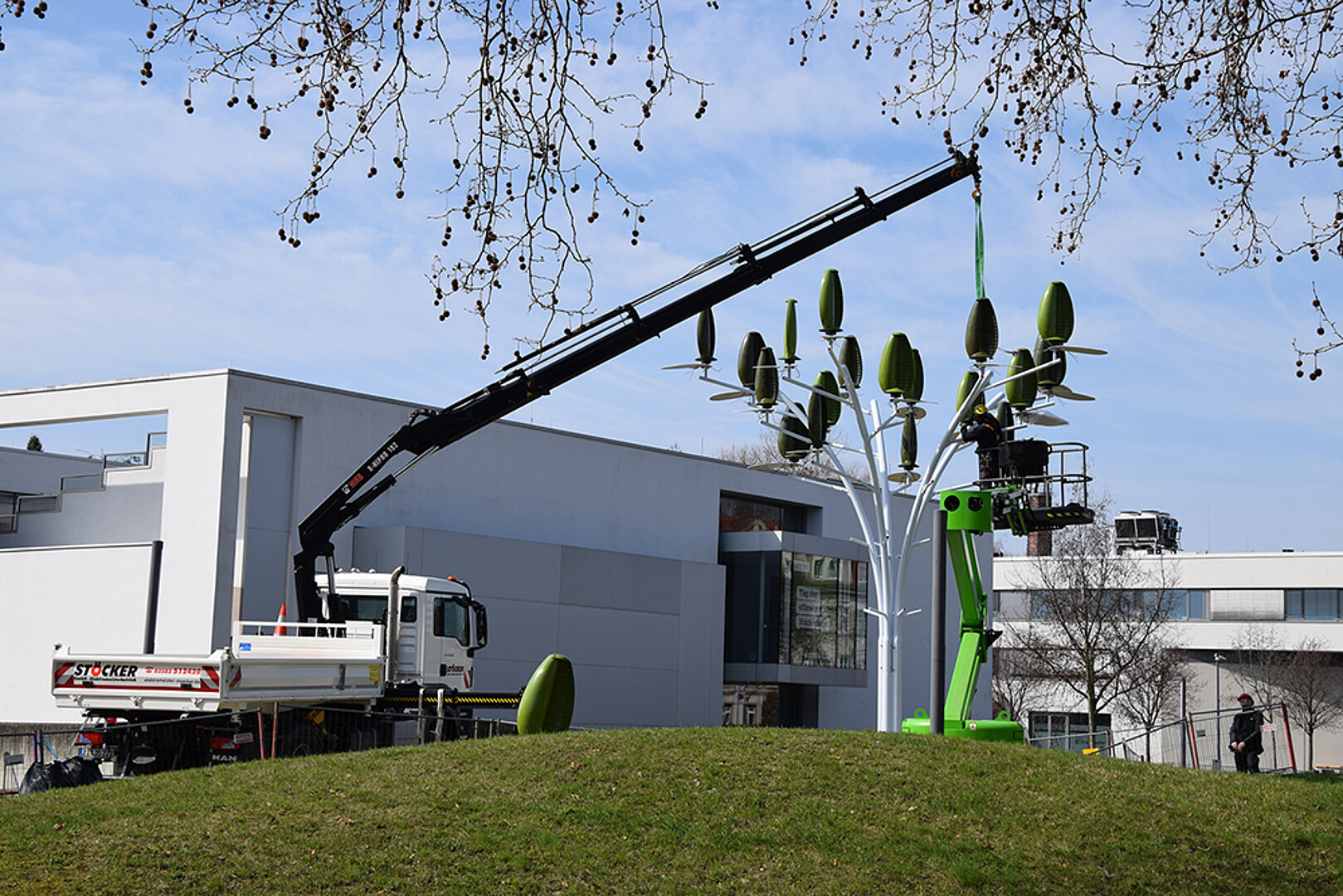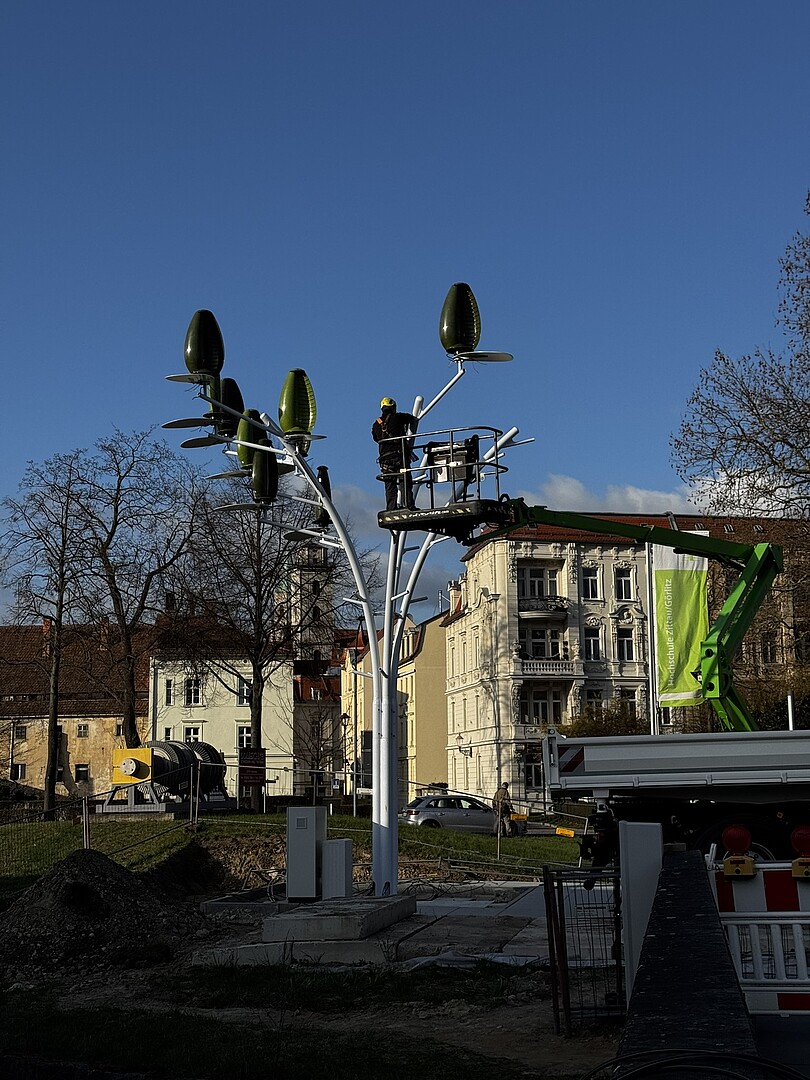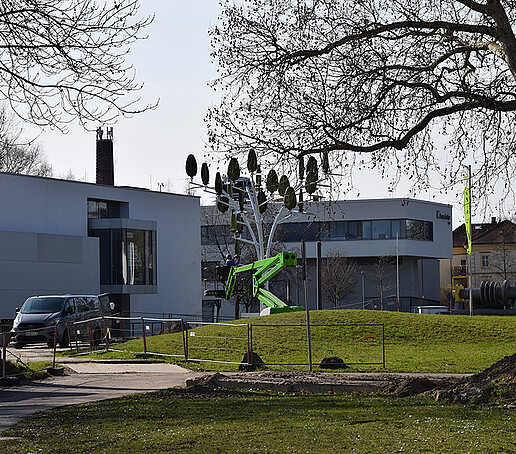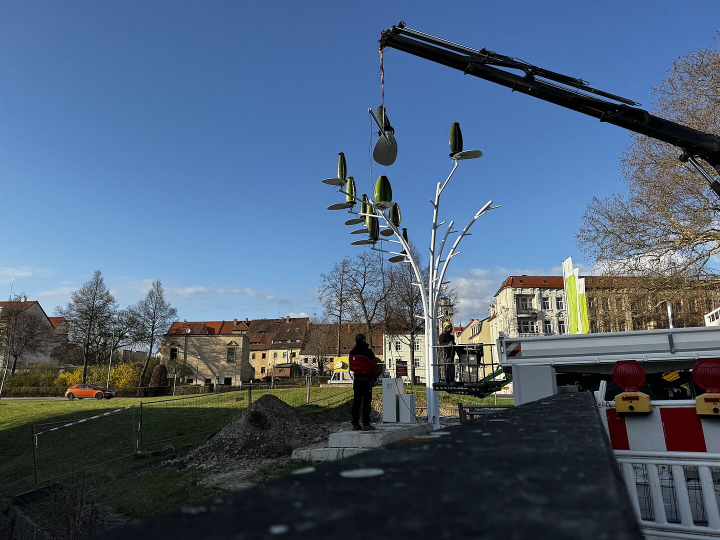 Auf dem Campus in Zittau der Hochschule Zittau/Görlitz wurde in der Zeit von Donnerstag, 26. März, bis Samstag, 28. März 2026, ein neuer Wind-Photovoltaik-Baum errichtet. Der knapp 10 Meter hohe Metallbaum vereint Generatoren für Wind- und Sonnenenergie in einem innovativen Demonstrationsobjekt und macht erneuerbare Energien im Campusalltag sichtbar und erlebbar.
