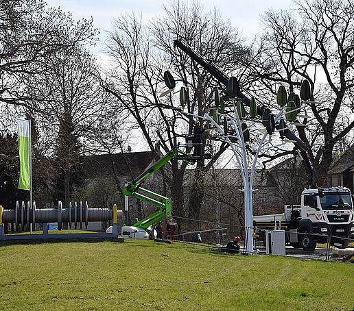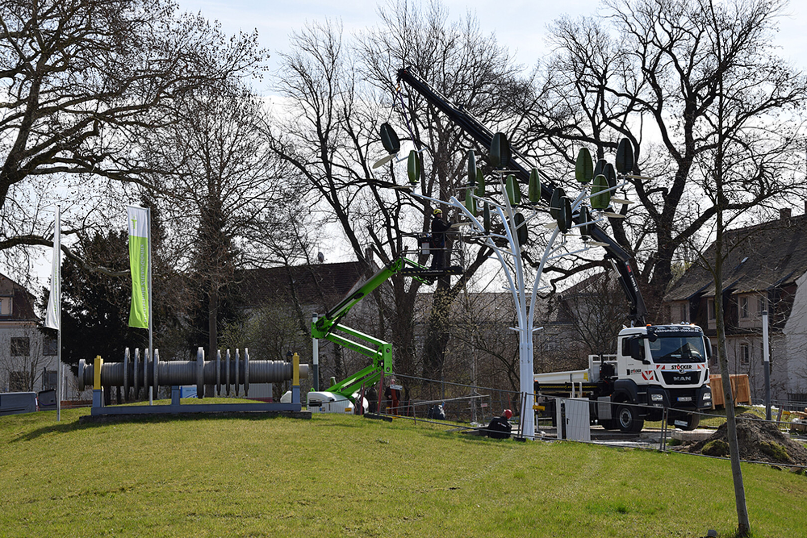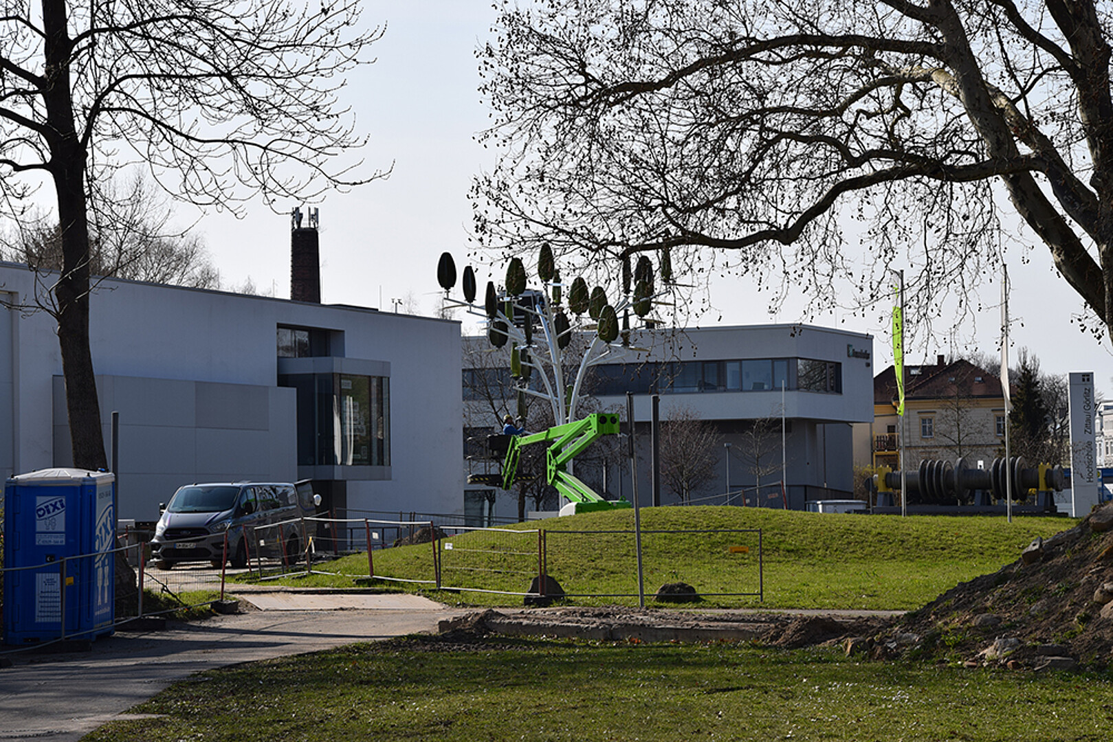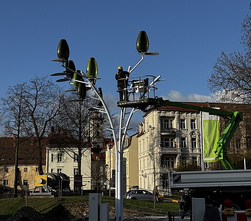Auf dem Campus in Zittau der Hochschule Zittau/Görlitz wurde in der Zeit von Donnerstag, 26. März, bis Samstag, 28. März 2026, ein neuer Wind-Photovoltaik-Baum errichtet. Der knapp 10 Meter hohe Metallbaum vereint Generatoren für Wind- und Sonnenenergie in einem innovativen Demonstrationsobjekt und macht erneuerbare Energien im Campusalltag sichtbar und erlebbar.
