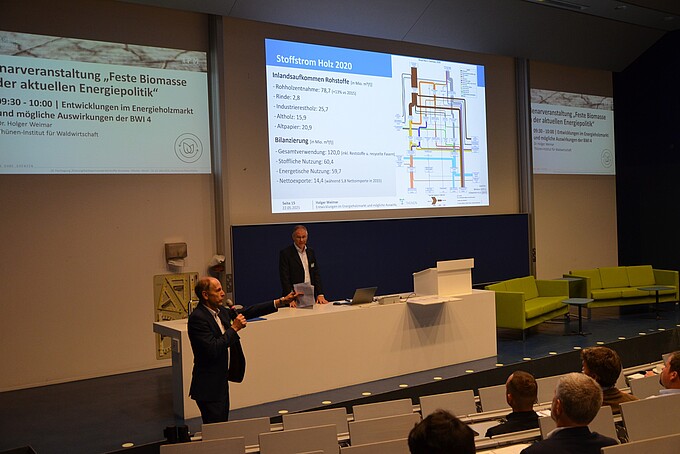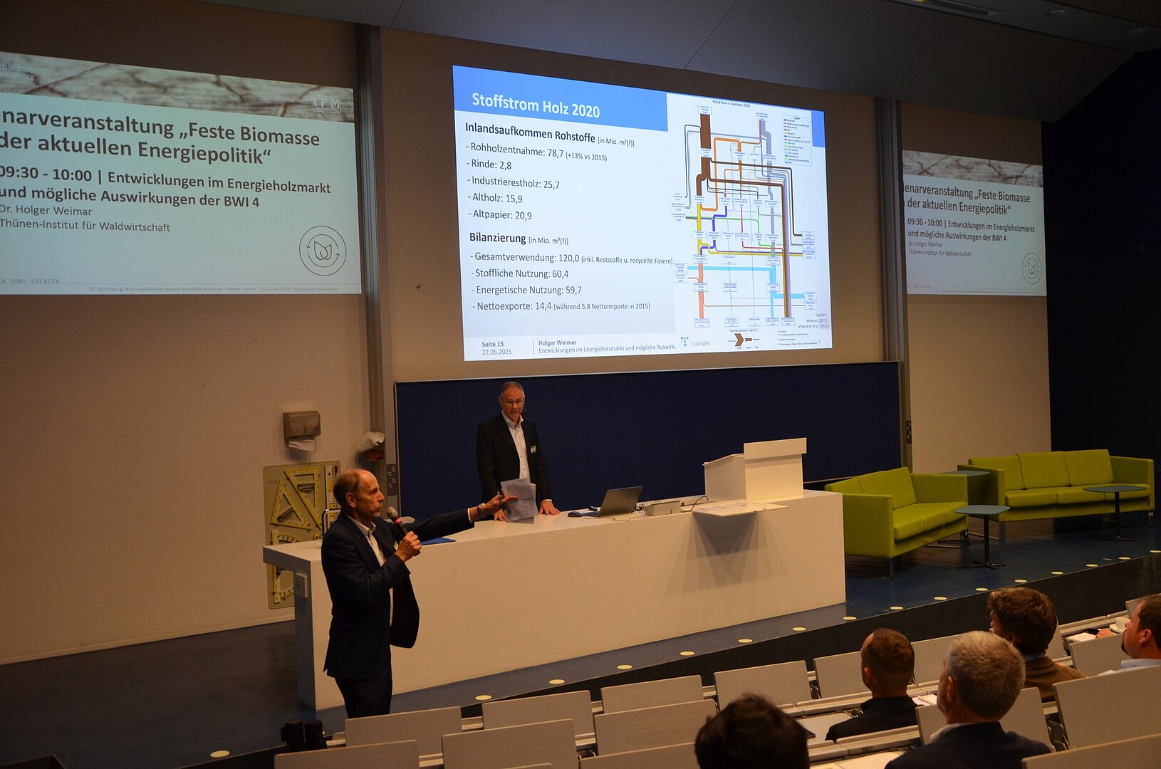 Das Grußwort des sächsischen Staatsministers für Umwelt und Landwirtschaft, Georg-Ludwig von Breitenbuch, unterstrich die Bedeutung nachhaltiger Holznutzung für den Klimaschutz. In einer Podiumsdiskussion diskutierten Vertretende aus Ministerien, Forschung und Wirtschaft die aktuelle Biomassestrategie und die Rolle der Bioenergie in der künftigen Energieversorgung.