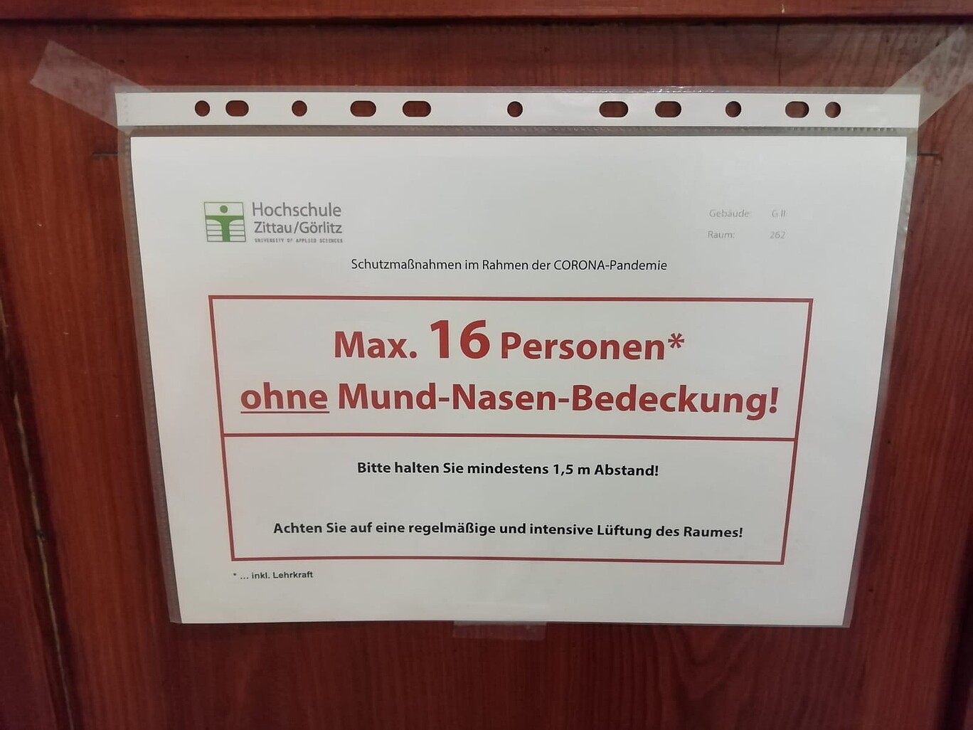Hinweisschilder an vielen Türen der Hochschule in Anlehnung an das Hygienekonzept