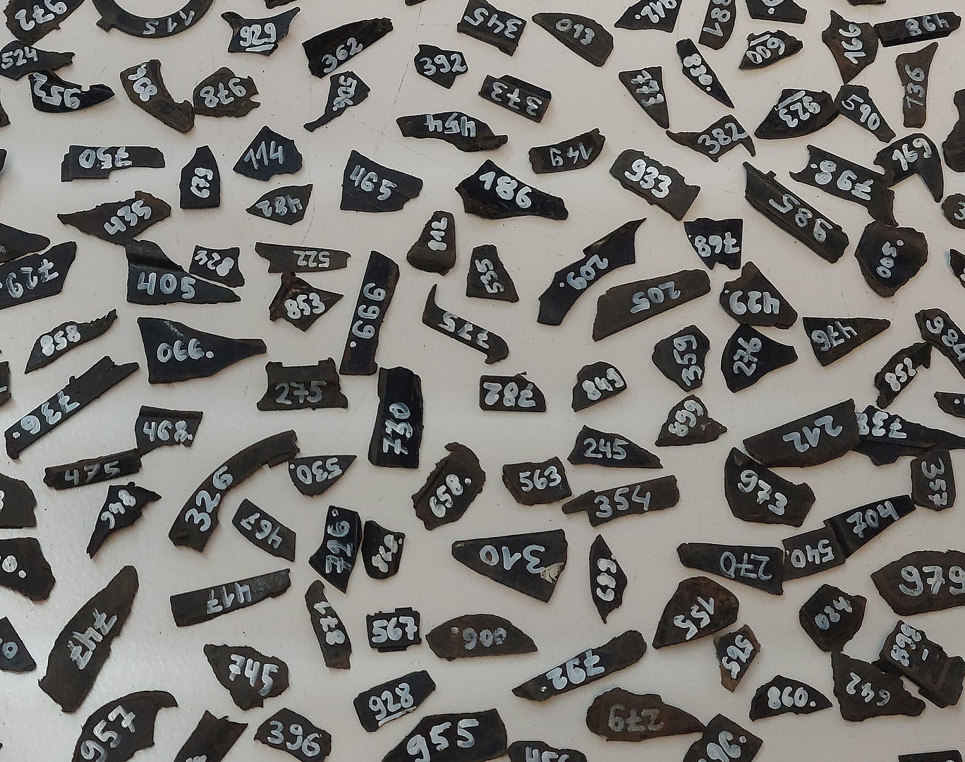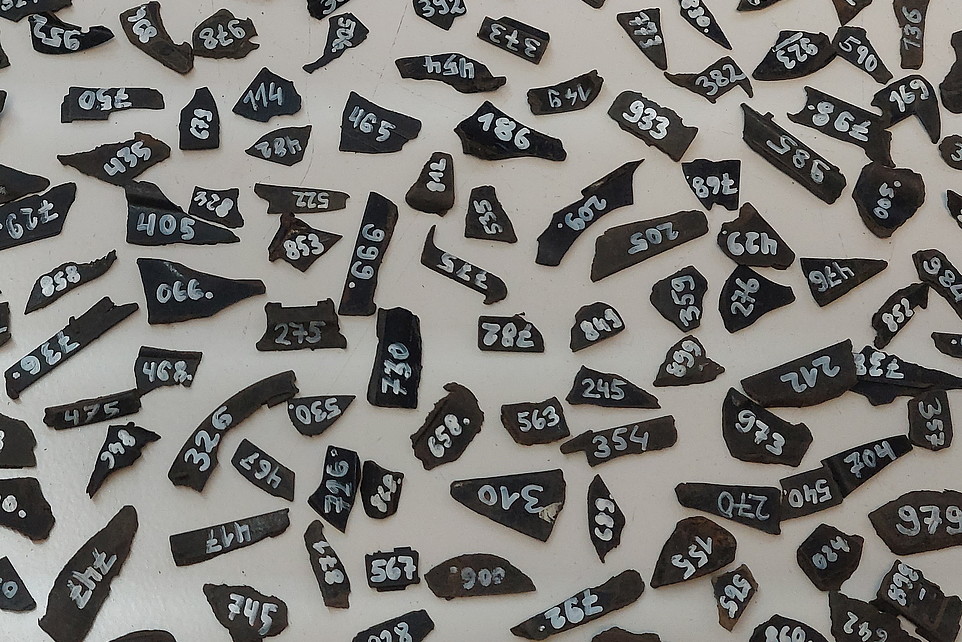 Die Probenahme fand im realen Abfallstrom statt und hatte am Ende 4 Proben mit je 1000 schwarzen Referenzteilchen. Jedes Teilchen bekam eine Zahl, damit es analysiert und bei den Versuchen wiedergefunden werden konnte.