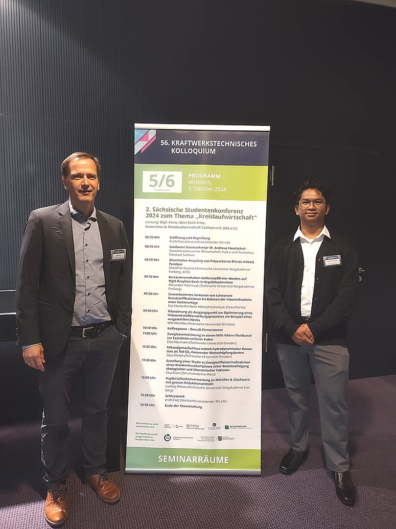 Am 9. Oktober hatte Faiz Bin Noor Mohd die großartige Möglichkeit, seine Arbeit auf der 2. Sächsischen Studentenkonferenz im Rahmen des 56. Kraftwerkstechnischen Kolloquiums vorzustellen. In einem Auswahlverfahren wurde die Arbeit von einer Jury im Bereich Kreislaufwirtschaft im Punkt Verfahrenstechnik ausgewählt. Schön, dass es diese Formate für Studierende gibt.