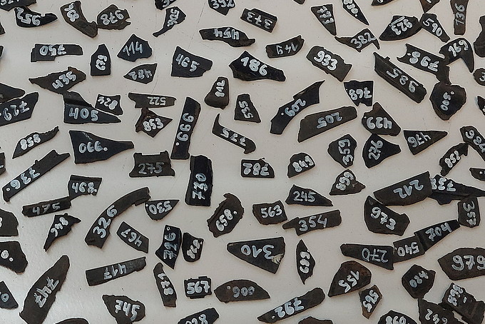 Die Probenahme fand im realen Abfallstrom statt und hatte am Ende vier Proben mit je 1000 schwarzen Referenzteilchen. Jedes Teilchen bekam eine Zahl, damit es analysiert und bei den Versuchen wiedergefunden werden konnte.