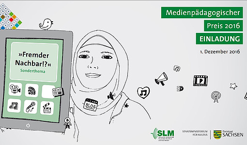 Der Medienpädagogische Preis 2016 wird von der Sächsischen Landesanstalt für privaten Rundfunk und neue Medien (SLM) und vom Sächsischen Staatsministerium für Kultus (SMK) verliehen. Der Wettbewerb prämiert die besten sächsischen Medienkompetenzprojekte mit Kindern, Jugendlichen und Erwachsenen sowie zum Sonderthema: »Fremder Nachbar!?«.
