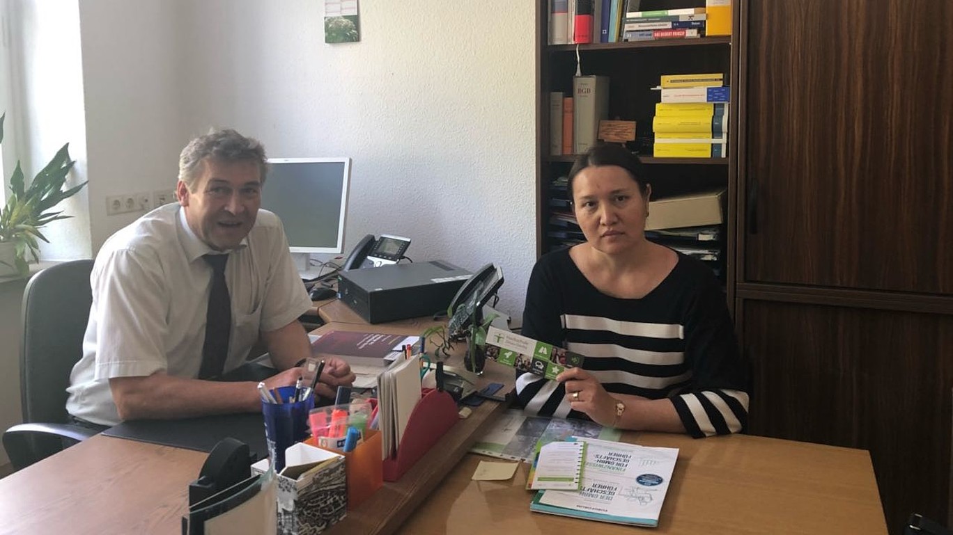 Foto: Prof. Roland Giese Prof. Giese und Frau Dr. Seitova während einer fachlichen Diskussion.