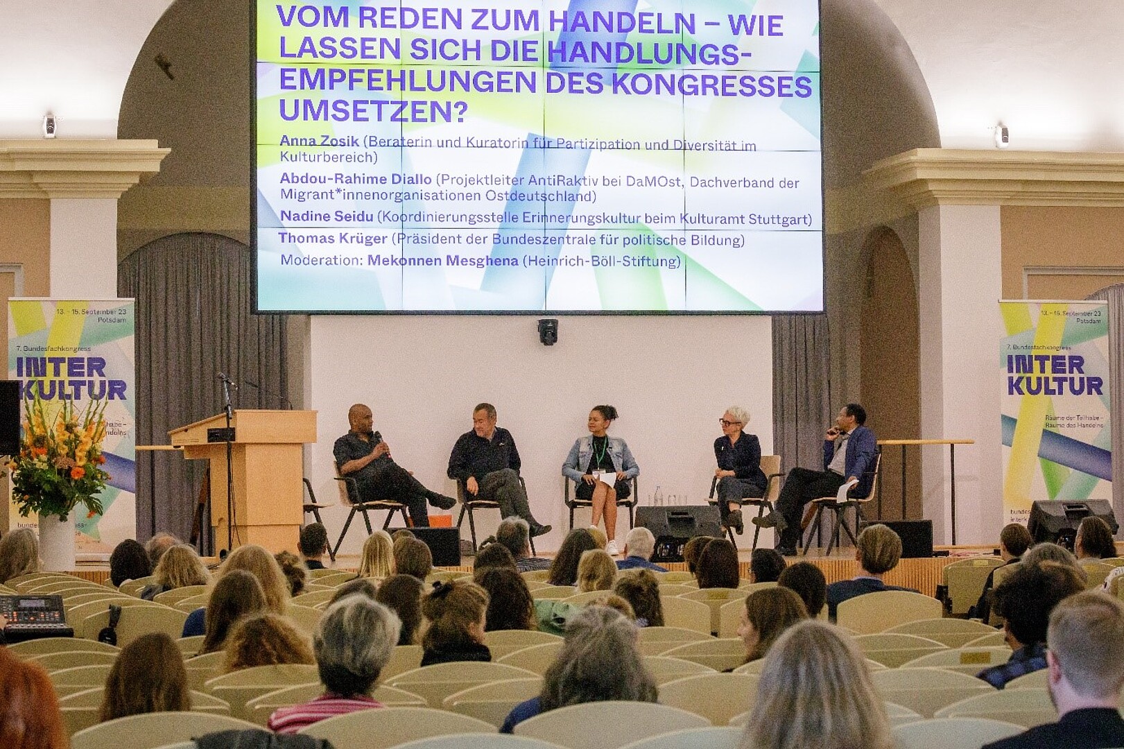 Der 7. Bundesfachkongress Interkultur erstreckte sich vom 13. bis 15. September 2023 und fand im Neuen Palais in Potsdam unter dem Thema "Räume der Teilhabe – Räume des Handelns" statt. Im Rahmen des Kongresses wurde das Fachforum "Grenzräume" abgehalten, das in Kooperation mit dem Zentrum für internationale Kulturelle Bildung des Goethe-Instituts Dresden und der Brandenburgischen Gesellschaft für Kultur und Geschichte – Plattform Kulturelle Bildung Brandenburg organisiert wurde.