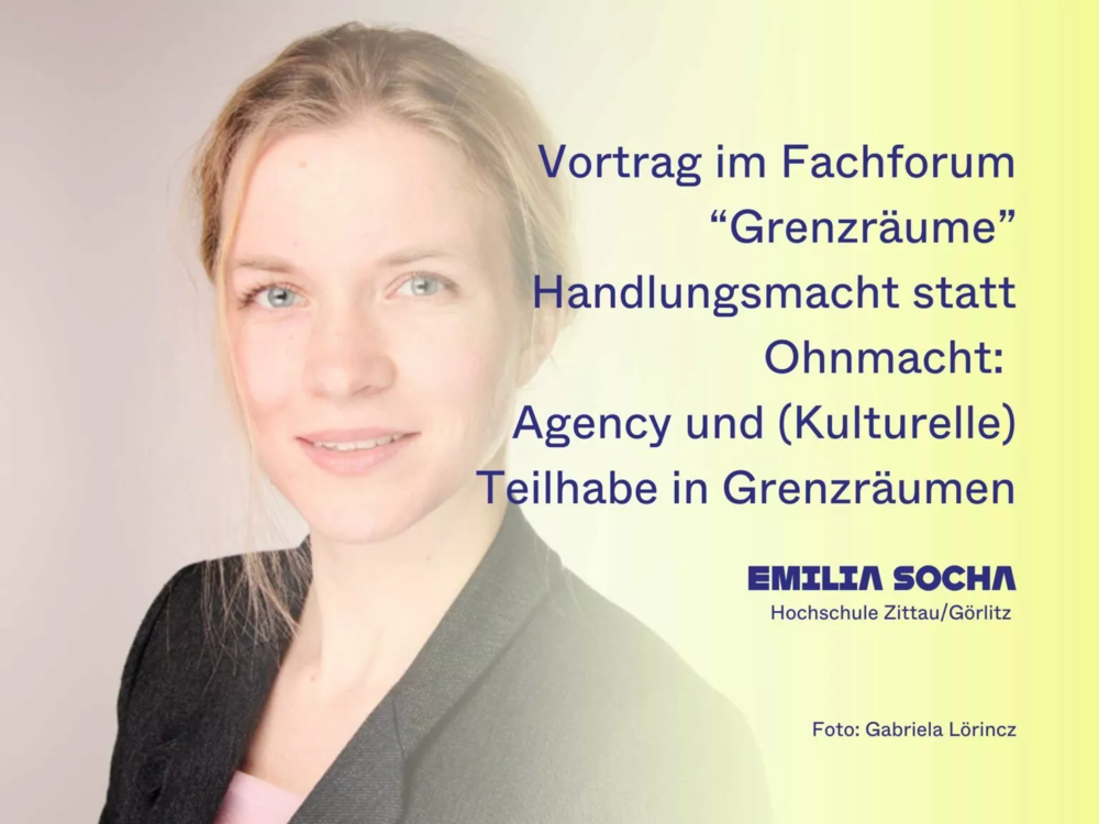 In ihrer Keynote mit dem Titel "Handlungsmacht statt Ohnmacht: Agency und (Kulturelle) Teilhabe in Grenzräumen", beleuchtete Emilia Socha, die am TRAWOS bei dem Projekt BePart – Beteiligung und Partnerschaften im Strukturwandel tätig ist, Forschungsthemen des TRAWOS-Instituts und unterstrich die Dynamik, die im polnisch-tschechisch-deutschen Grenzraum durch kulturelle GrenzgängerInnen entsteht. Während ihrer Keynote formulierte Emilia Socha Handlungsempfehlungen, die später in einer fokussierten Diskussionsrunde erörtert wurden.