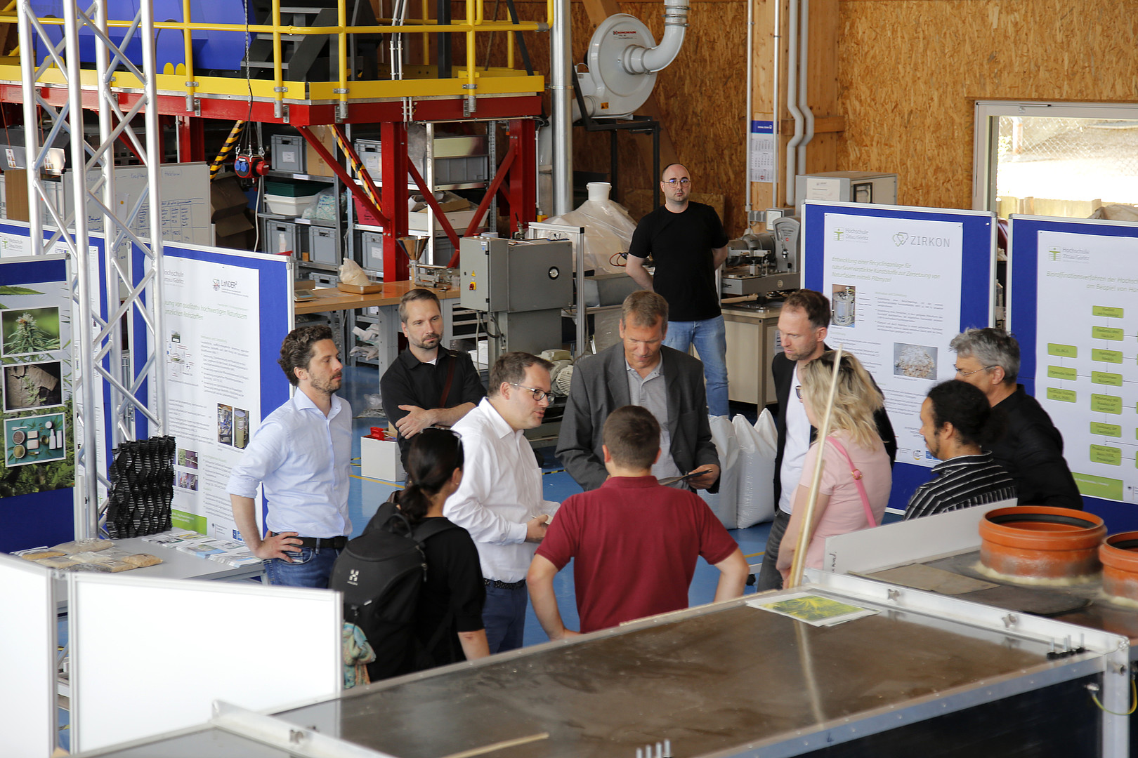 Während des Treffens bot sich auch die Gelegenheit zu einem Rundgang durch die zukünftigen Räumlichkeiten des DLR_School_Lab Hochschule Zittau/Görlitz, bei dem ein produktiver Austausch über inhaltliche Bestandteile und didaktische Formate der Experimente stattfand. Wertvolle Einblicke in ein Forschungsfeld der Hochschule erhielten die Teilnehmenden durch Herrn Professor Jens Weber bei einem Besuch in den LaNDER3-Hallen. Insbesondere im Bereich der Entwicklung neuer Schüler*innenexperimente bieten Forschungsthemen der HSZG, wie die zukunftsweisende Forschung der Partnerschaft Lausitzer Naturfaserverbundwerkstoffe, Dezentrale Energie, Rohstoffe, Ressourcen, Recycling (LaNDER³) ausgezeichnete Ansatzpunkte, die es für junge Menschen erlebbar zu machen gilt.
