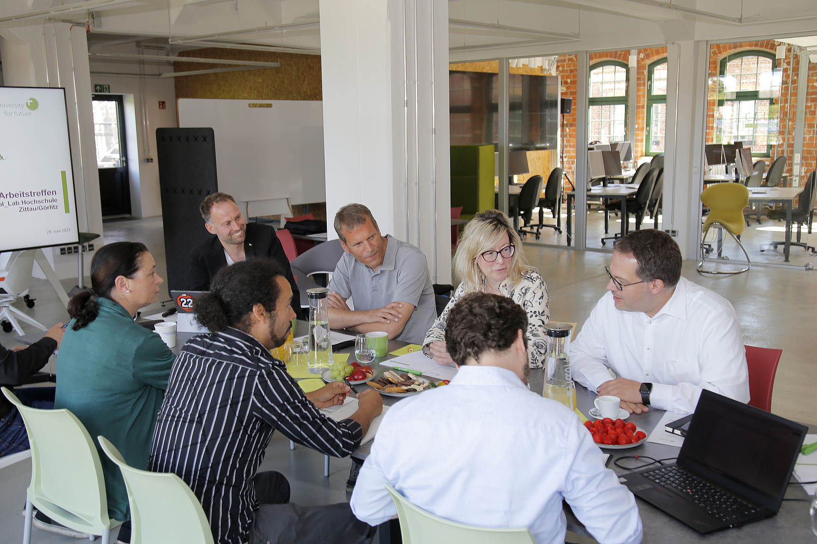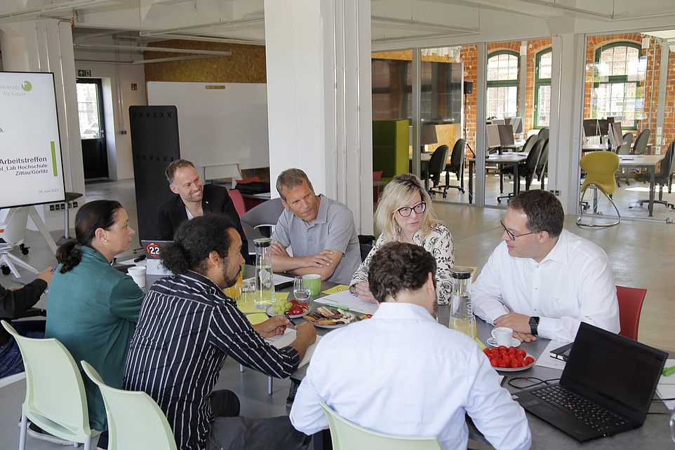 Am 29.06.2023 trafen sich verschiedene Teilnehmende des DLR und der HSZG in den Mandauhöfen Zittau, um die zukünftige Zusammenarbeit zu stärken und das DLR_School_Lab inhaltlich voranzubringen. An dem Treffen nahmen die Hochschulleitung, vertreten durch den Rektor Herr Professor Alexander Kratszch und der Prorektorin für Bildung und Internationales Frau Professorin Sophia Keil, sowie Herrn Dr. Christoph Pawek, Vorstandsbeauftragter für Nachwuchsförderung beim DLR, Herrn Tobias Bohnhardt, Leiter des DLR_School_Lab Berlin, teil. Ebenso waren Frau Dr. Diana Wenzke, wissenschaftliche Mitarbeiterin DLR am Standort Cottbus, Herr Hasan Chahi, wissenschaftlicher Mitarbeiter am DLR Institut für CO2-arme Industrieprozesse, und Mitarbeiter des ZUKLOS-Projektes anwesend.