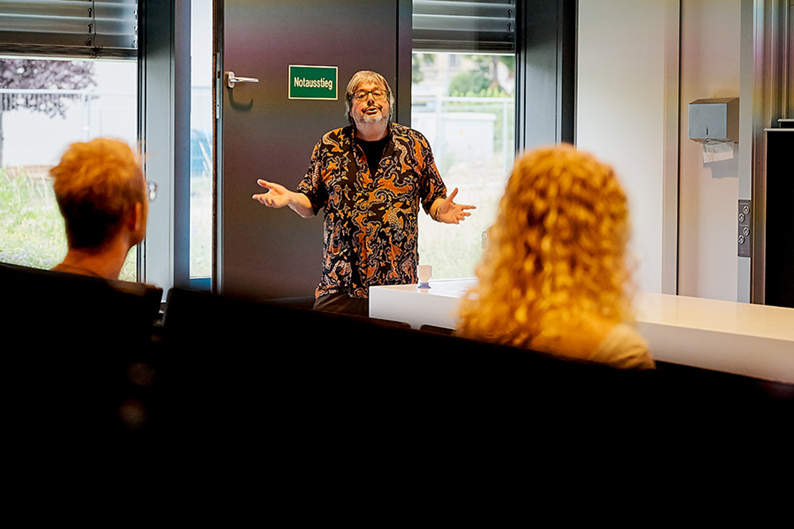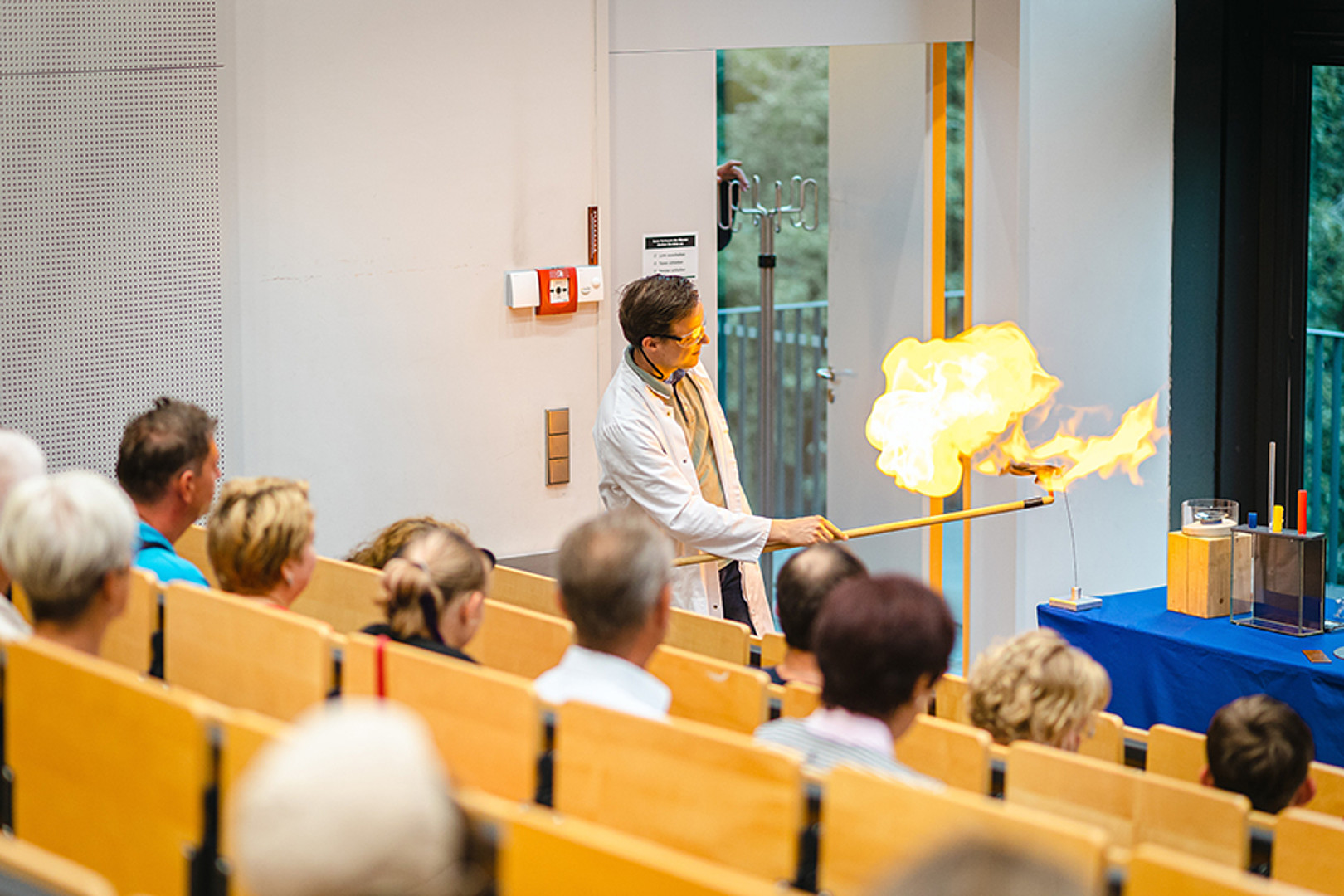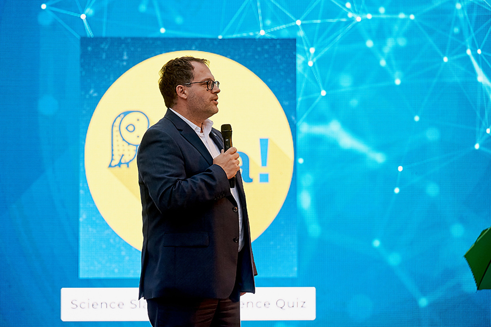 Ab 20 Uhr versammelten sich alle Neugierigen an den beiden Hochschulstandorten. In Görlitz startete die Abendveranstaltung im großen Hörsaal. Es wartete eine Experimente-Show zum Miträtseln und drei Science-Slam Vorträge. Aber zuvor gab es offizielle Grußworte und die Verlosung von Preisen für die erfolgreichen Stempelrallyisten.