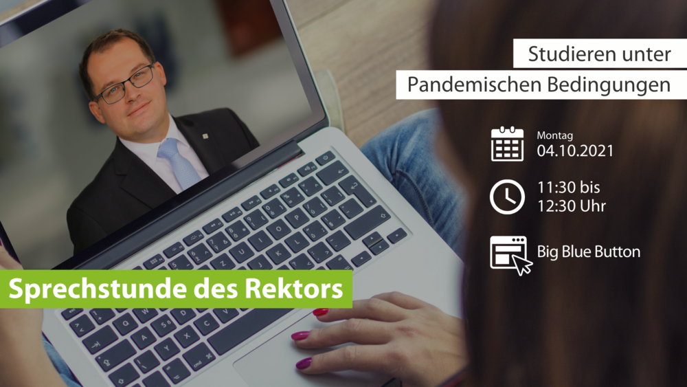 Am kommenden Montag, dem 4. Oktober, bietet unser Rektor von 11.30 bis 12.30 Uhr eine Sprechstunde für Studierende zum Studieren unter pandemischen Bedingungen an. Dort besteht die Möglichkeit, alle Fragen zum Hochschulbetrieb im neuen Semester zu stellen.