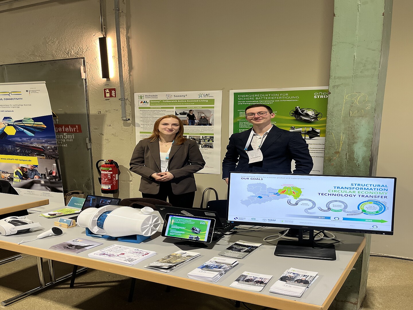 Beim Transferforum von futureSAX am 13. November 2025, der Innovationsplattform des Freistaates Sachsen, präsentierten Maria Fabisch vom GAT und ihr Saxony⁵-Kollege Lucas Wenzel die vielfältigen Transferaktivitäten der Hochschule Zittau/Görlitz. Die Veranstaltung fand in der modernen und offen gestalteten fabrik Chemnitz statt und bot den Teilnehmenden eine ideale Plattform für Austausch, Vernetzung und fachlichen Dialog.