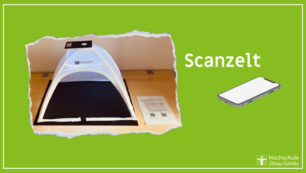 Ab sofort kann in der HSB Zittau ein Scanzelt genutzt werden, um Dokumente mit dem eigenen Smartphone zu scannen.