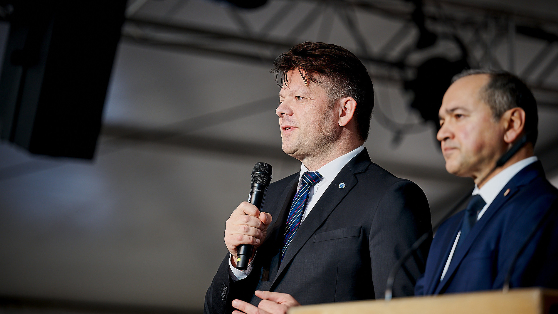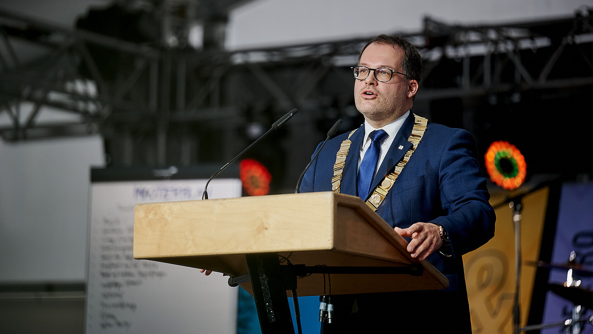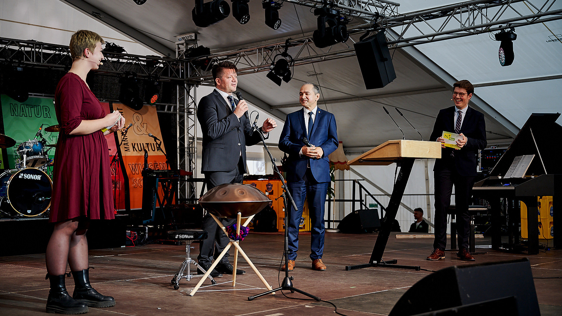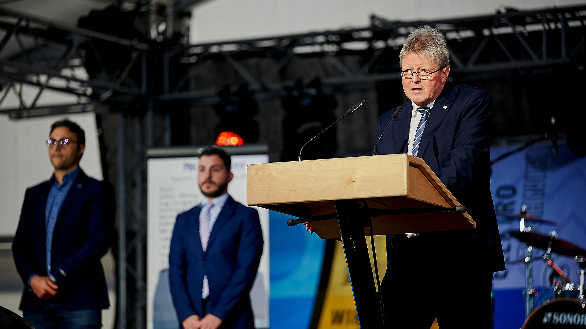 In seiner darauffolgenden Immatrikulationsrede bedankte sich Rektor Prof. Alexander Kratzsch bei der Stadt Zittau dafür, dass mit der Immatrikulationsfeier das große Festzelt des 23. Sächsischen Landeserntedankfest eingeweiht werden durfte. Zittau war am ersten Oktober-Wochenende Ausrichter des Festes, welches jährlich in einem anderen sächsischen Ort stattfindet. Extra dafür wurde das große Festzelt auf dem Markt gebaut und extra für uns schon einen Tag eher. So erschloss sich dann auch die Besonderheit der diesjährigen Location.
