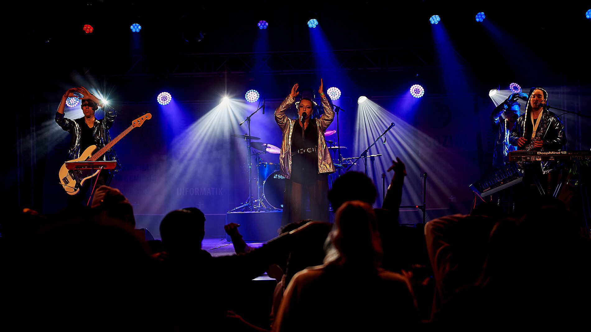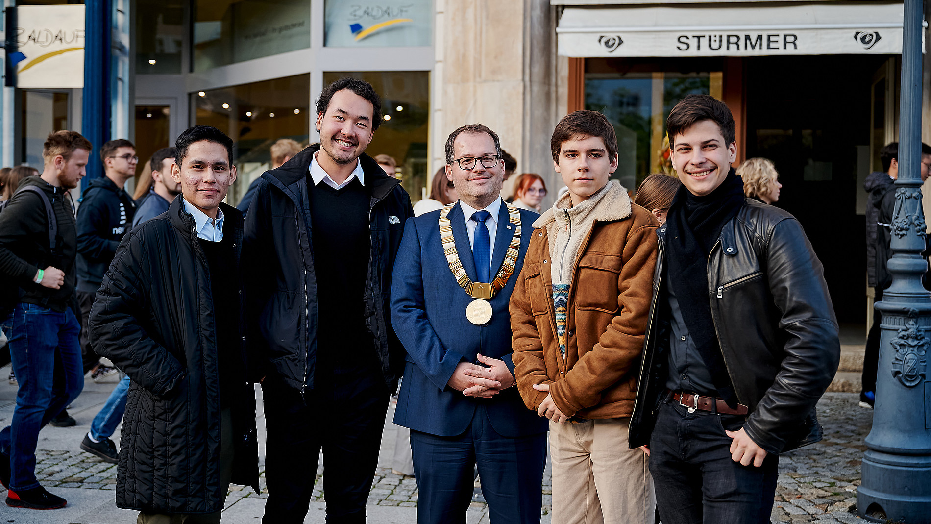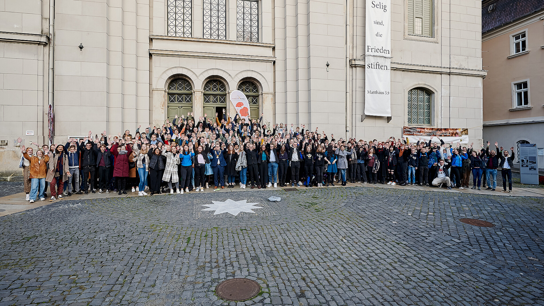 Nach dem Festakt folgte das obligatorische Ersti-Fotoshooting - diesmal auf den Stufen der Zittauer Johanniskirche. Und danach hieß es: Essen, trinken und ordentlich feiern. Für die richtige Partystimmung sorgten das DJ-Team Juja und Martinus sowie die spektakuläre Live-Show der tschechischen Elektro-Pop Band Manu Destra.
