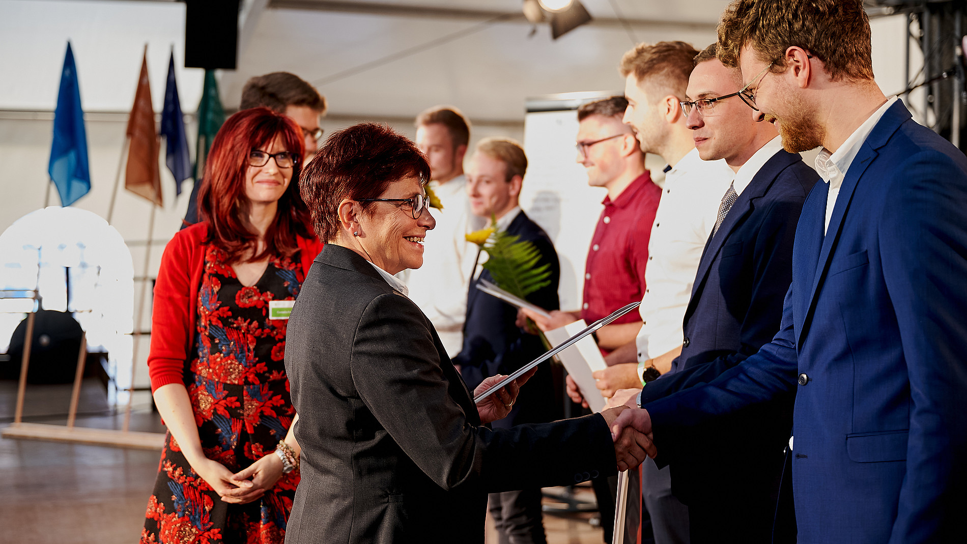 Eine Immafeier ist auch immer ein guter Rahmen, um besondere Leistungen zu würdigen. Im Rahmen des Festaktes wurden daher die diesjährigen Deutschlandstipendien sowie der Fördervereinspreis für besondere Leistungen ausländischer Studierender und der DAAD-Preis 2022  vergeben. Die Auszeichnungen wurden von Mario Linack, dem Vorsitzenden des Fördervereins der Hochschule Zittau/Görlitz, begleitet. Der Förderverein stiftet jährlich sowohl Deutschlandstipendien als auch Förderpreise für besondere studentische Leistungen und unterstützt so unmittelbar Studierende der HSZG. Großen Applaus und Zustimmung erntete der Dezernent für Studium und Internationales Dr. Stefan Kühne für seinen Redebeitrag anlässlich der Preisvergaben, in dem er eindrucksvoll auf die Bedeutung der Demokratie für unsere Gesellschaft einging: