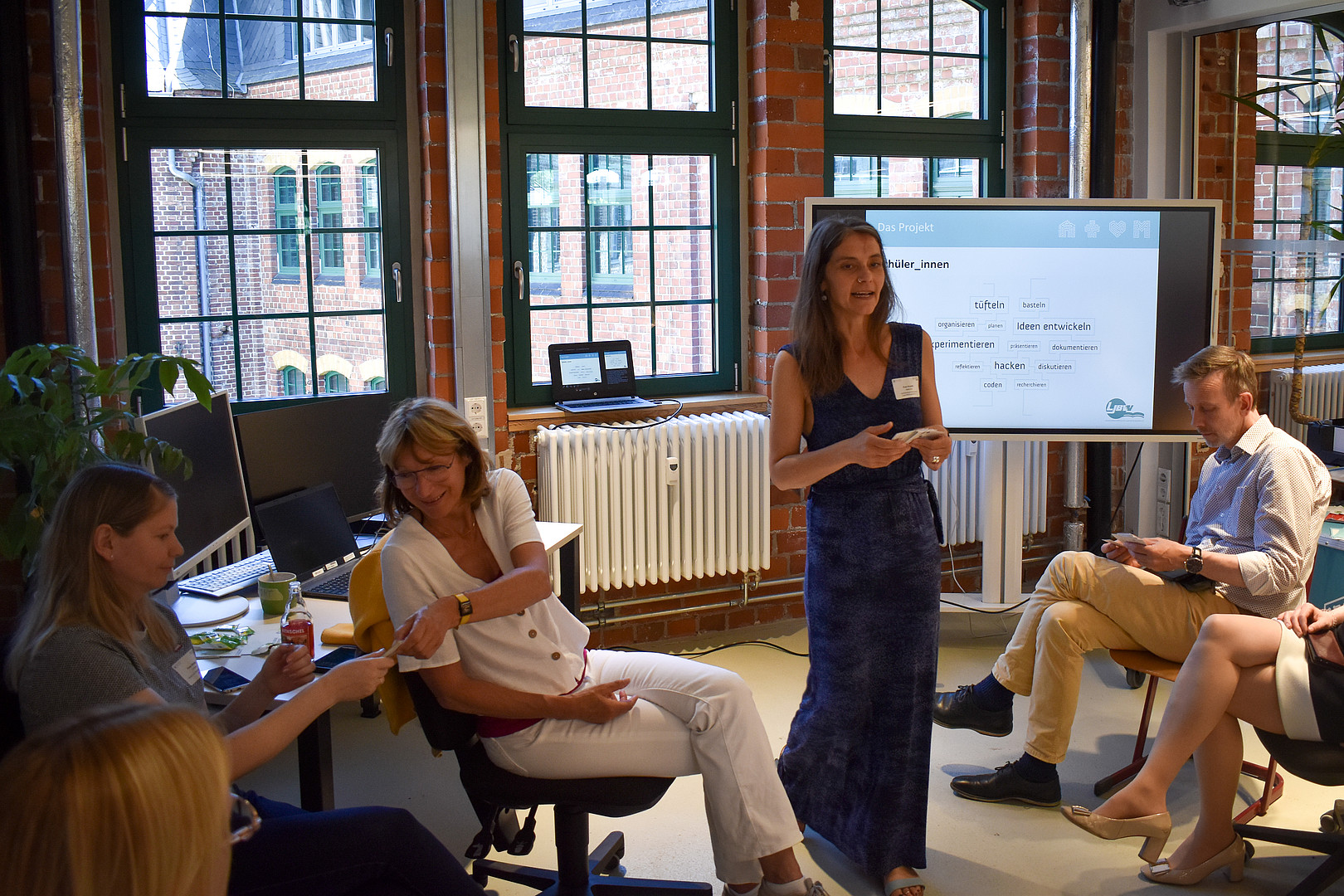 Frau Krauße, Bildungsreferentin beim Landesverband Sächsischer Jugendbildungswerke e. V. (LJBW) stellte nach der Mittagspause den Lehrkräften sowie interessierten Mitarbeiter*innen der HSZG das Projekt „Make Your School – Eure Ideenwerkstatt“ vor. Das Projekt bietet Schüler*innen die Chance, ihre Schule mitzugestalten und sich mit der Unterstützung von erfahrenen Mentor*innen im Programmieren, Tüfteln und Basteln auszuprobieren. Die Hochschule Zittau/Görlitz strebt an, Netzwerkpartner von „Make Your School“ zu werden, um zukünftig Hackdays an Schulen in der Oberlausitz durchführen zu können.