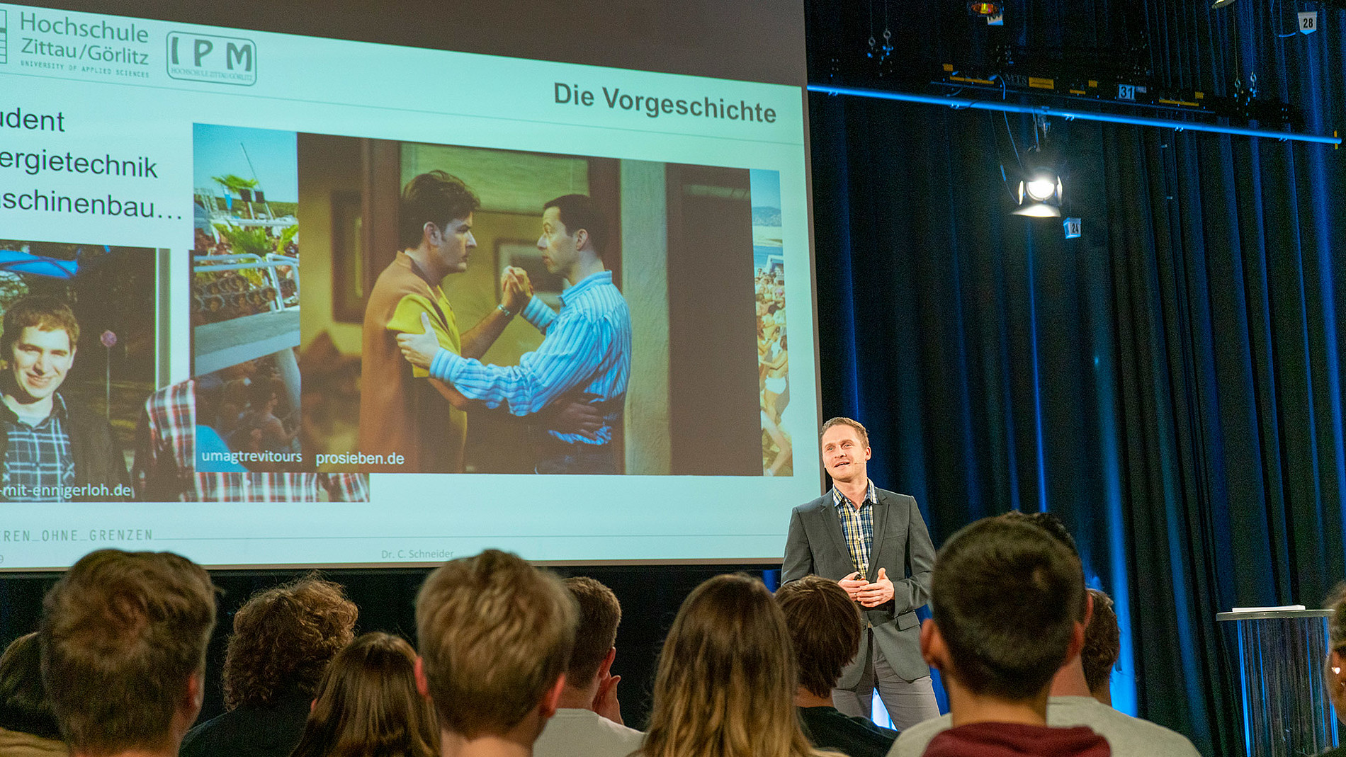 Geballte Wissenschaft in 10 Minuten, verpackt in spannenden, anschaulichen Vorträgen - diesem Wettbewerb um die beste "Slam-Präsentation" stellte sich in diesem Jahr Dr.-Ing. Clemens Schneider aus dem Institut für Prozesstechnik, Prozessautomatisierung und Messtechnik. Zusammen mit vier Mitbewerbern trat er am 24. Oktober im Fernsehstudio der Hochschule Mittweida um den Pokal des 2.  Saxony5 Science Slams in die Arena.