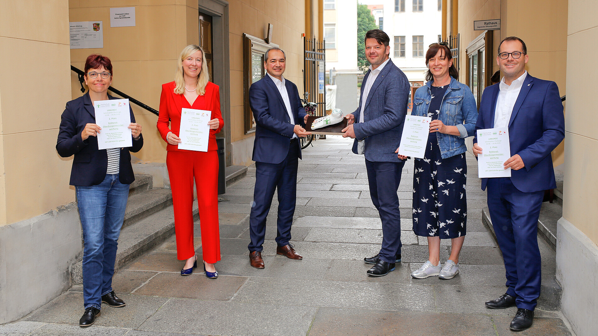 • Die Initiative des Rektorats der Hochschule sowie der Oberbürgermeister der Hochschulstädte Zittau und Görlitz. Dazu gab es 2020 erstmalig eine Rektorat-Oberbürgermeister-Sonderwertung zur Schrittzähler-Challenge. Das bedeutete, dass Rektor Prof. Dr.-Ing. Alexander Kratzsch, Prorektorin Prof. Dr. Sophia Keil, Prorektor Prof. Dr. Raj Kollmorgen und die Kanzlerin Dipl.-Jur. Karin Hollstein antraten gegen OB Thomas Zenker, OB Octavian Ursu, Anke Zenker-Hoffmann und Juliane Zachmann.