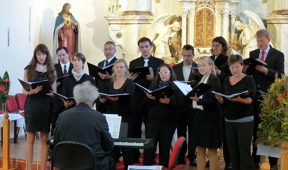 ist zurück von einer Chorreise, die ca. 10 Tage ins tschechische Krnov (Jägerndorf) führte. Die Stadt liegt an der tschechisch-polnischen Grenze am Fuße des Altvatergebirges und ist vor allem aufgrund ihrer langen Orgelbautradition bekannt. Der Chor führte vier Konzerte mit vorwiegend geistlicher Vokalmusik in Krnov und der näheren Umgebung auf. Erstmals übernahmen die mitreisenden Chorsolisten mehrere Solopartien im Programm. Die Resonanz auf die Konzerte war durchweg positiv, zudem konnten zwei neue Partnerchöre gewonnen werden, die möglicherweise schon 2016 nach Zittau eingeladen werden. Neben den regelmäßigen Proben blieb genug Zeit, um die Region zu erkunden. Der Chor übernachtete in einer Klosteranlage im Zentrum der Stadt, durfte die Gemeinschaftsküche nutzen und abends im Klostergarten beim Lagerfeuer sitzen. Als Dankeschön für dieses gastfreundliche Entgegenkommen begleitete der Hochschulchor den sonntäglichen Gottesdienst musikalisch. Es war eine sehr schöne Sommerkonzertreise, die noch lange in Erinnerung bleiben wird! Wir danken der Hochschule Zittau/Görlitz und dem Ford-Autohaus Zittau für die Bereitstellung zweier Kleinbusse! Damit konnten die An- und Abreise, sowie die Tagesausflüge spontan und unkompliziert geplant werden.
