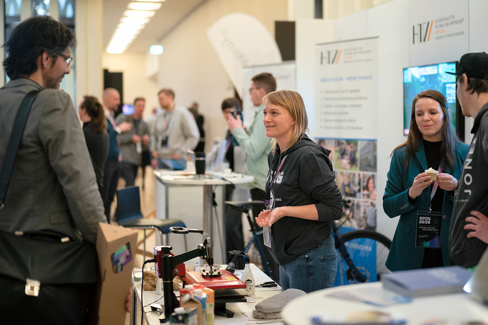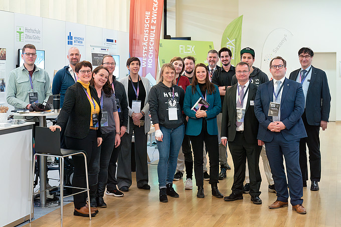 Die Hochschule Zittau/Görlitz präsentierte sich vor Ort mit den vier anderen sächsischen Hochschulen für Angewandte Wissenschaften an einem großen Gemeinschaftsstand des Verbundprojektes "Saxony5". Während das Team von Saxony5 sich thematisch den Fragen stellte, was Wissens- und Technologietransfer ist und wozu man ihn braucht, zeigten die sächsischen HAWs ausgewählte Projekte aus ihrer Forschungs- und Transfertätigkeit.