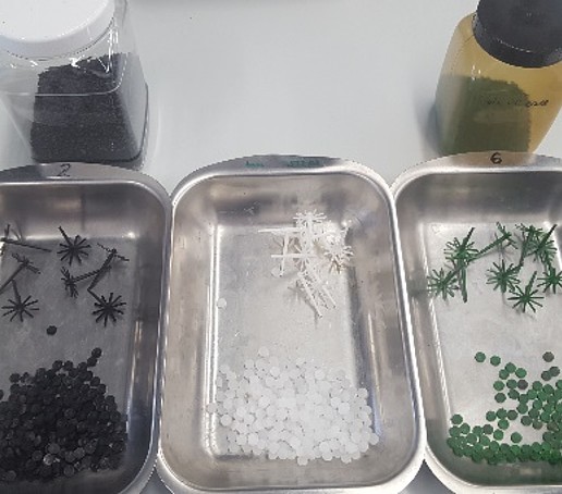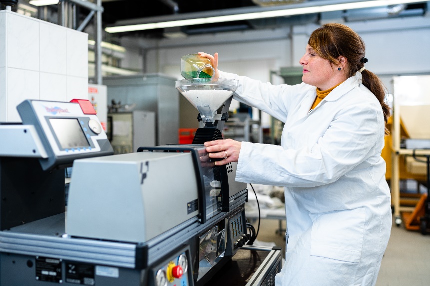 Gute Neuigkeiten aus dem Forschungsschwerpunkt "Werkstoffgerechtes Recycling von NFK-Abfällen" (IP1/FSP2): Labor-Spritzgussmaschine einsatzbereit! Spritzguss von Zugversuch Probekörpern oder Prototypen kleinteiliger Bauteile möglich.