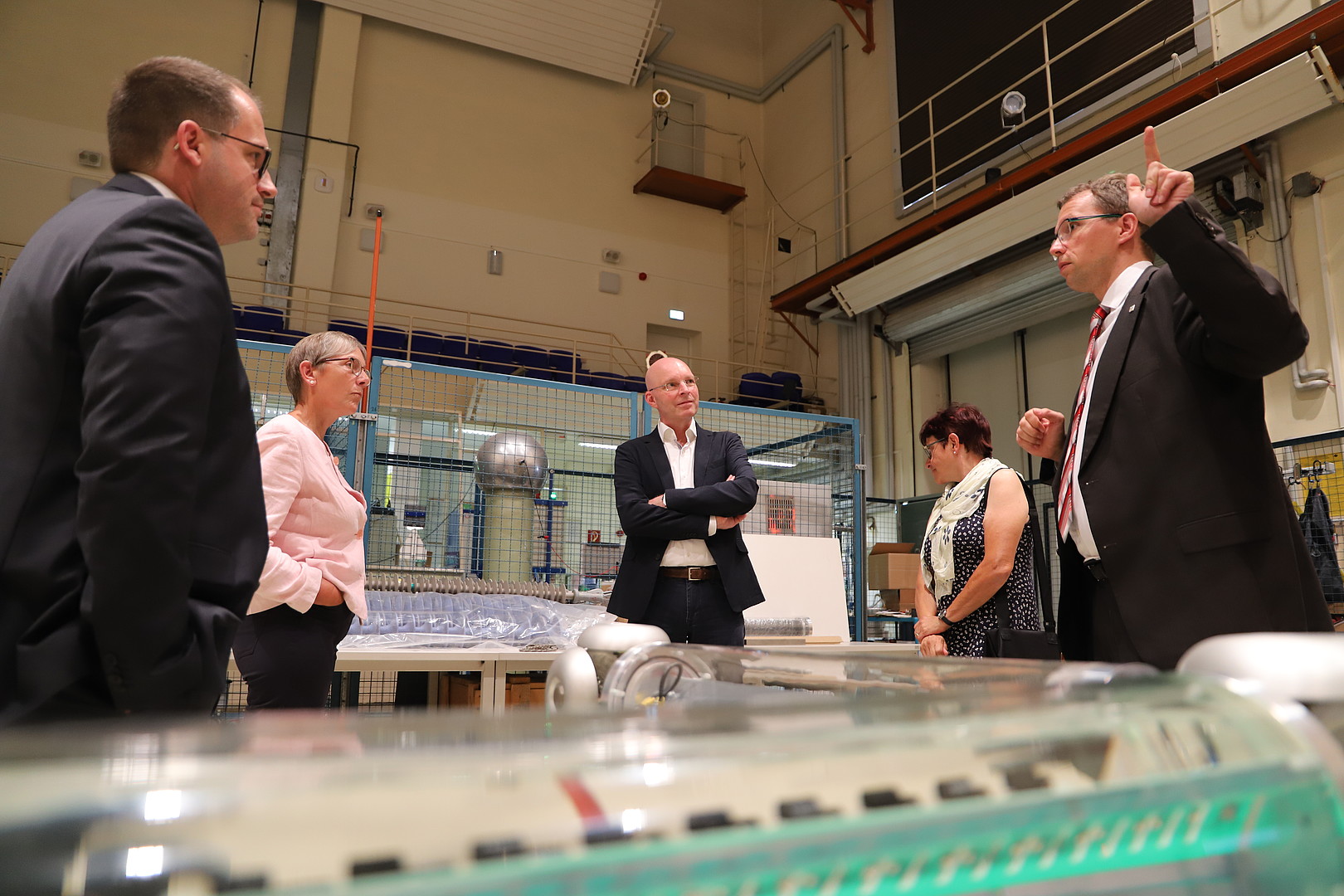 Im Anschluss besichtigte Frau Franke unter Leitung von Prof. Kornhuber, Professor an der Fakultät Elektrotechnik und Informatik, das Labor für Hochspannungstechnik. Frau Franke zeigte sich beeindruckt von der modernen Ausstattung und den laufenden Forschungsprojekten.