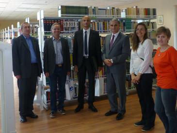 Im Gespräch: Frau Kanzlerin Grażyna Malczuk, Frau Kamila Biniek, Herr Doz. Dr. Józef Zaprucki, Herr Bibliotheksdirektor Kazimierz Stapór, Herr Dr. Falk Maiwald, Herr Ralf Schwarzbach, Herr Kazimierz Jarema (v.r.n.l.)