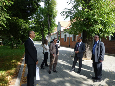 Bei einem kurzen Rundgang auf dem parkähnlichen Campus machte Herr Doz. Dr. Józef Zaprucki auf den dendrologischen Naturpfad aufmerksam, auf dem ausgewählte Gehölze und Bäume in fünf Sprachen (Polnisch, Lateinisch, Deutsch, Englisch, Russisch) beschildert sind. Darüber hinaus verwies Frau Kamila Biniek stolz auf die fast neue Schwimmhalle sowie die größte Sporthalle Hirschbergs auf dem Campus.