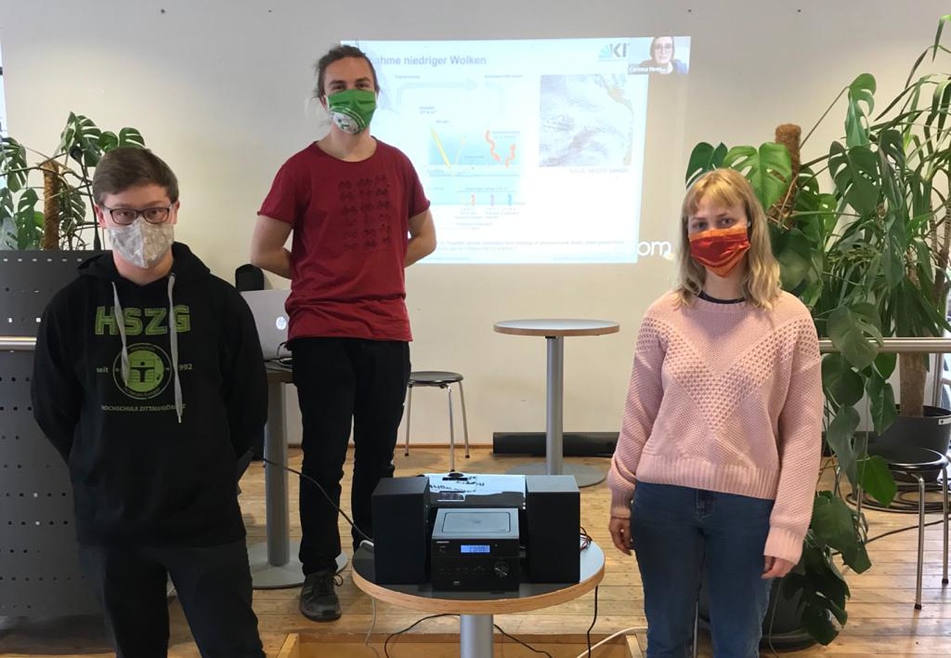 S4F bei der Live- Übertragung der "Puplic Climate School" der Mensa Görlitz, (von li. nach re.) Jonas, Alexander und Leonore