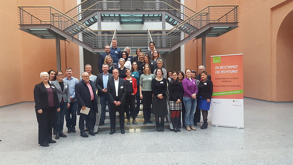 Studienabbrecher*innen für eine berufliche Ausbildung im Freistaat zu gewinnen, ist Kernziel des landesweiten Netzwerkes Quickstart Sachsen. Wie bestehende regionale Beratungs- und Vermittlungsangebote für die Zielgruppe Studienabbrecher*innen gut gebündelt werden, zeigte der Zwischenbilanzworkshop am 19. November 2019 im SMK in Dresden. Die Besonderheit des Projektes liegt in der gemeinsamen Arbeit von allen sächsischen Hochschulstandorten, mehreren Ministerien, der Regionaldirektion Sachsen der Bundesagentur für Arbeit und den Arbeitsagenturen sowie den Kammern, die hier am Austausch beteiligt waren.