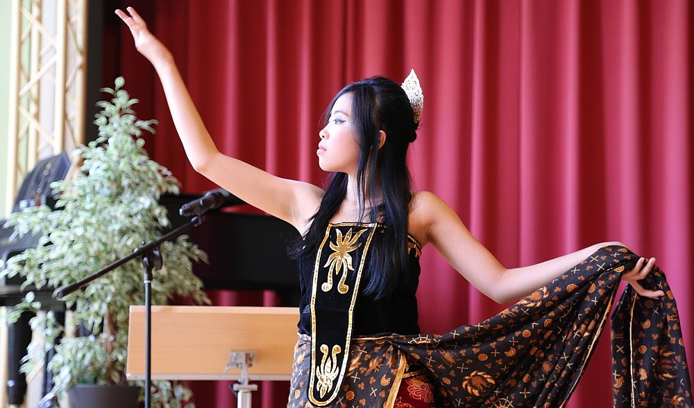 Auch in diesem Jahr wurde die kulturelle Umrahmung der feierlichen Stunde von den Studierenden und Absolventen des Studienkollegs übernommen. Die verschiedenen Beiträge waren alle für sich einzelne Höhepunkte. So auch die musikalische Eröffnung am Piano durch die Studentin Nazanin Bam aus dem Iran die mit einem Stück von Beethoven bezauberte, die Studentin Shahnozakhon Avezbadalova aus Tadschikistan die mit einem Tanz aus ihrer Heimat faszinierte, der Gesang und das Gitarrensolo des Studenten Malcolm Jones aus England, die interkulturell gestaltete Band mit Studenten aus Indonesien und Marokko und die traditionellen Tänze der Studentinnen aus Indonesien.