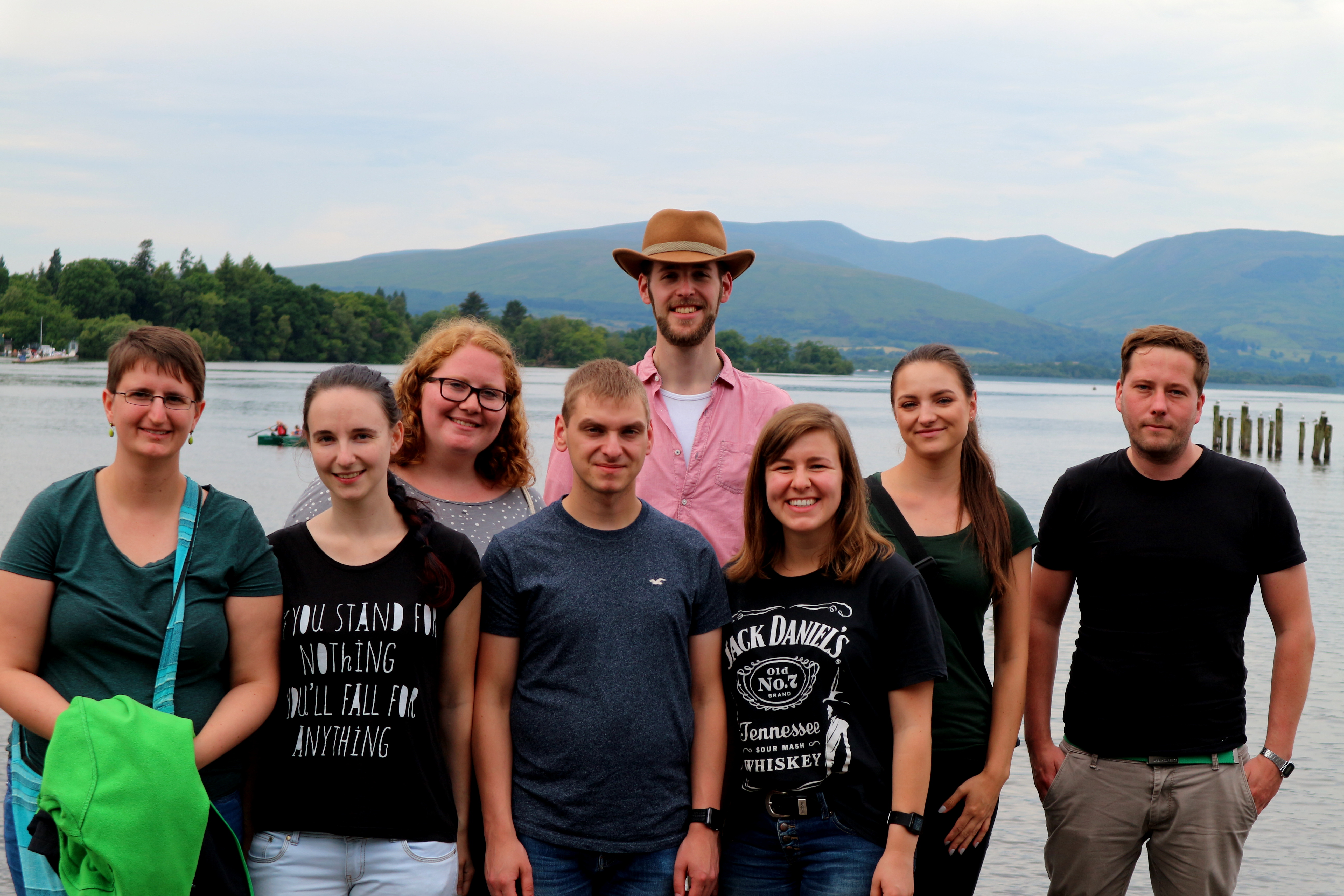 Wir nutzen den Tag, um uns die Umgebung von Edinburgh und die angrenzenden Lowlands anzusehen. Dafür haben wir eine Bustour bei „timberbrush tours“ gebucht. Highlights sind dabei der Loch Lommond – der flächenmäßig größte See in Schottland und Stirling Castle. Viele von euch (zumindest hoffe ich das) kennen sicher den Film „Braveheart“ mit Mel Gibson als William Wallace in der Hauptrolle. Stirling Castle spielt dabei eine bedeutende Rolle, wie in der gesamten schottischen Geschichte. Diese wird uns auch von dem Busfahrer während der Fahrten zu den verschiedenen Orten auf witzige Art und Weise näher gebracht. Kleine Details stellen sicher, dass auch der größte Schottlandfan neue Dinge erfährt.[caption id="attachment_1120" align="alignnone" width="5184"]Gruppenfoto am Loch Lommond Gruppenfoto am Loch Lommond[/caption]