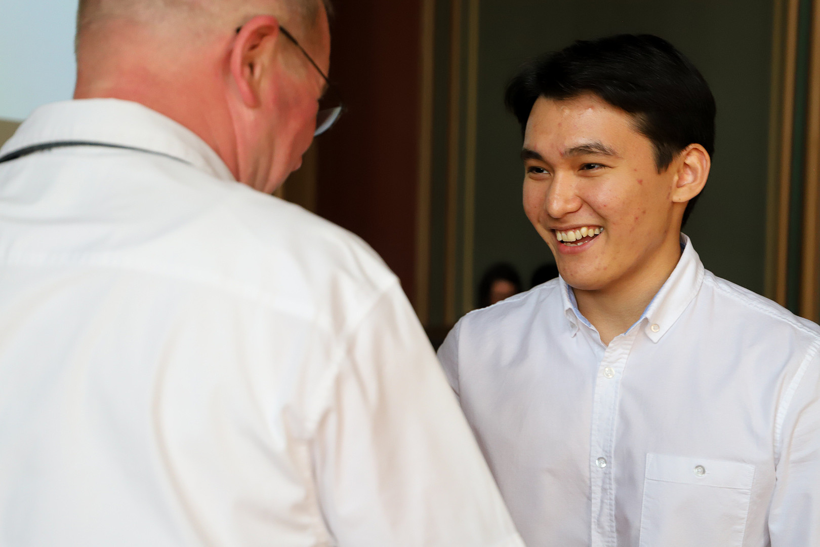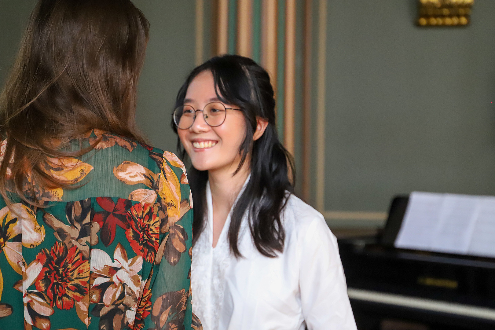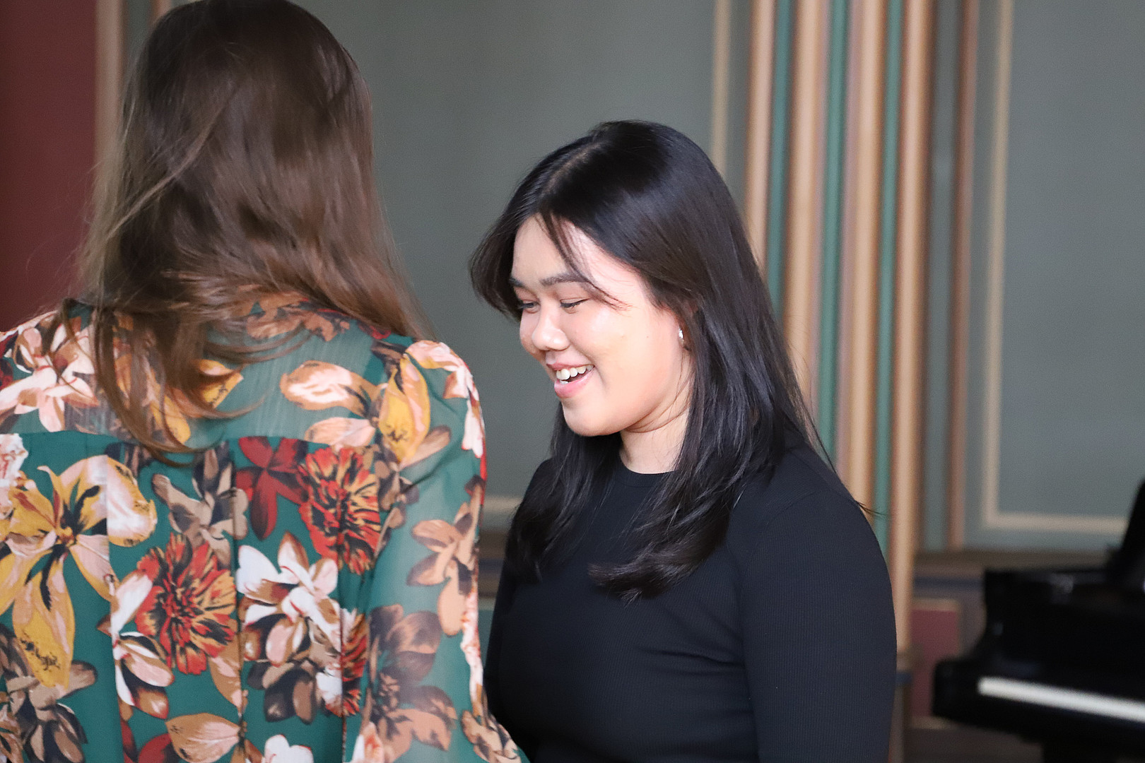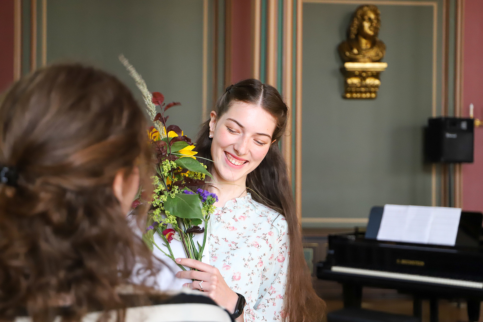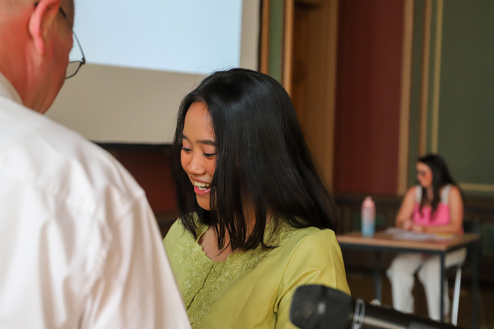 Als nach Grußworten, musikalischen Beiträgen und der Ehrung des langjährigen Leiters des Studienkollegs Dr. Stefan Kühne, der Moment der Zeugnisausgabe gekommen ist, erreicht die emotionale Stimmung ihren Höhepunkt. Die Lehrkräfte des Studienkollegs richten Botschaften an ihre Zöglinge in deren Muttersprache. Die gerührten Gesichter der jeweils angesprochenen Nationalitäten: Unbezahlbar! Spätestens jetzt wird klar: Hier wurde nicht nur gelehrt, sondern hier wurde begleitet, unterstützt, motiviert und mitgefiebert. Die Kollegiat*innen und die Hochschulmitarbeitenden sind eine eine große Familie! Die Dankbarkeit der jungen Menschen wird bei der anschließenden Übergabe der Zeugnisse erlebbar. Es gibt viele Umarmungen und dankbare Blicke.