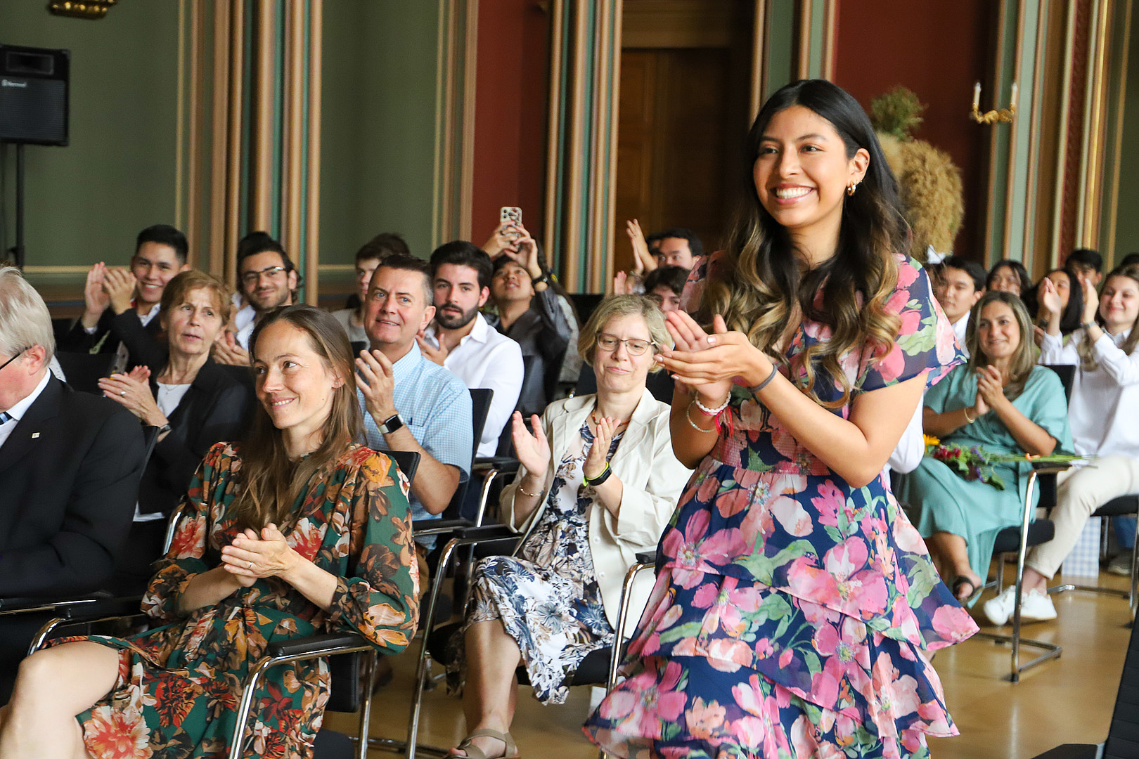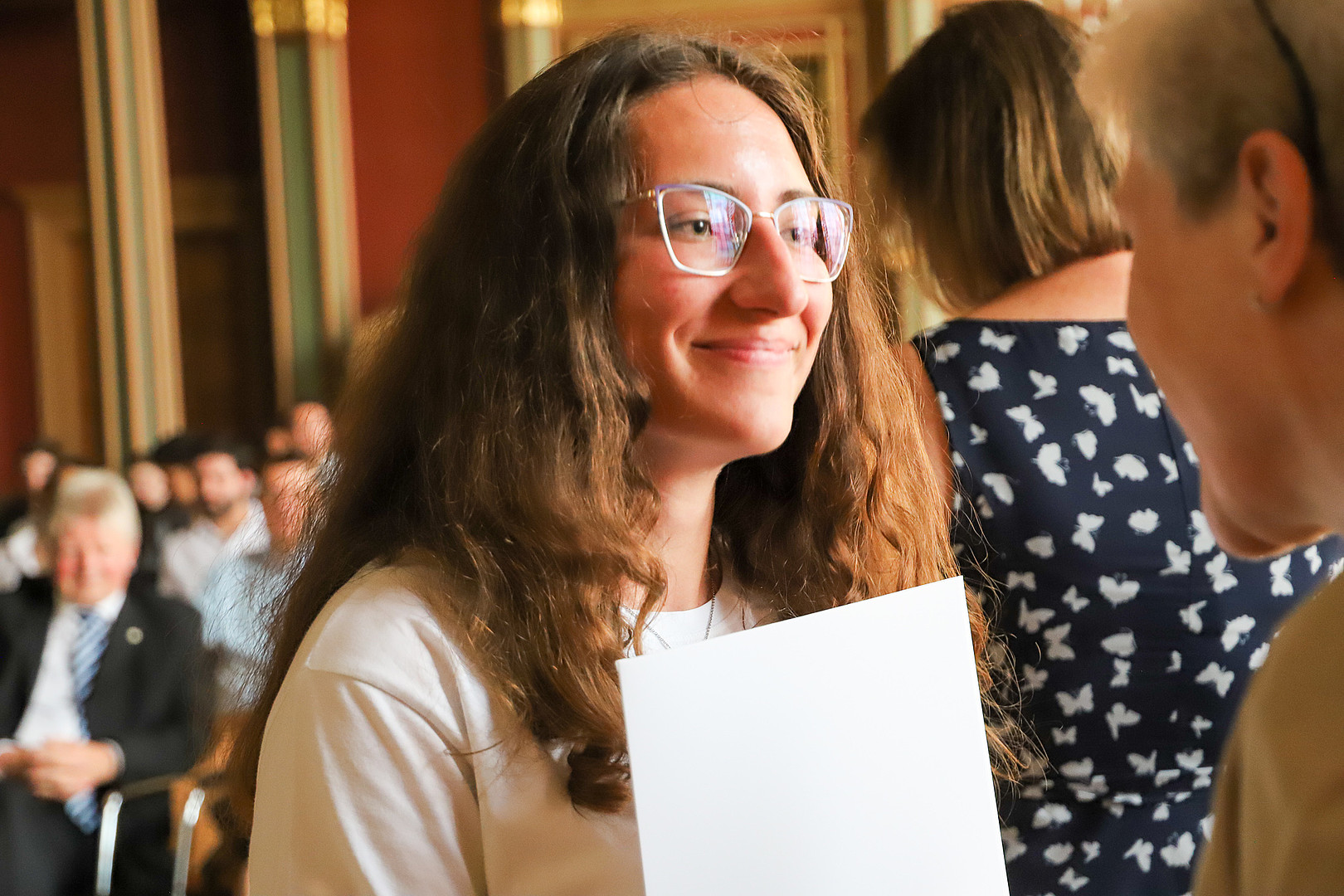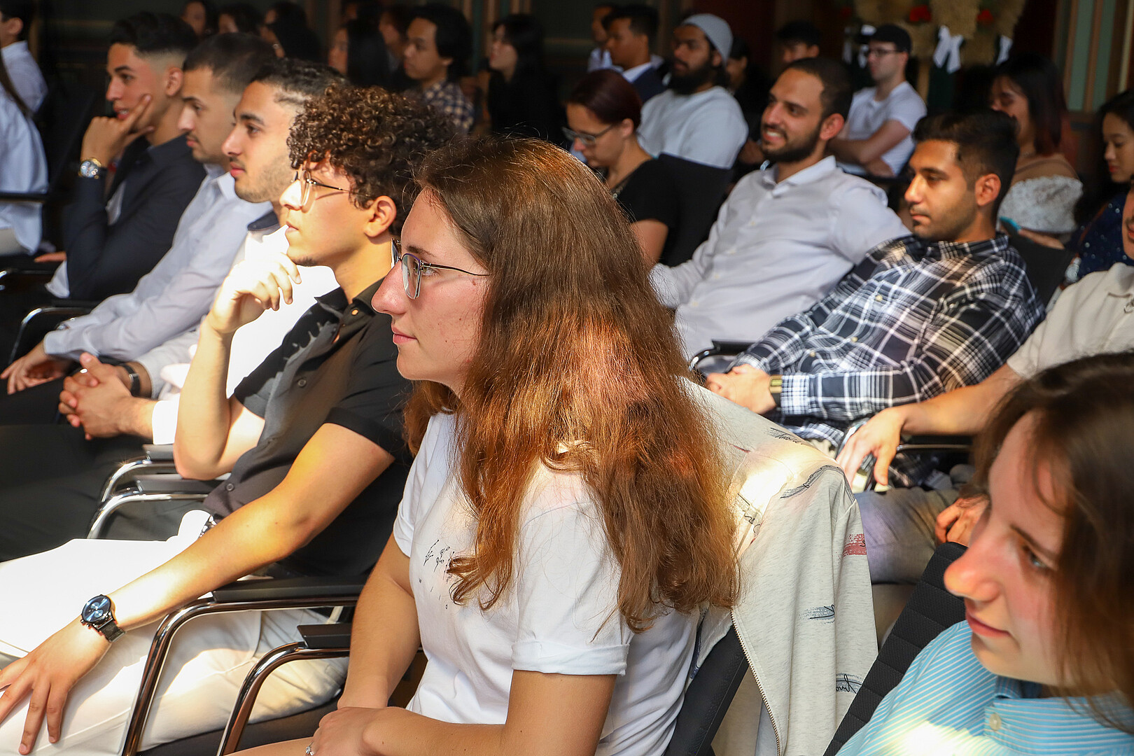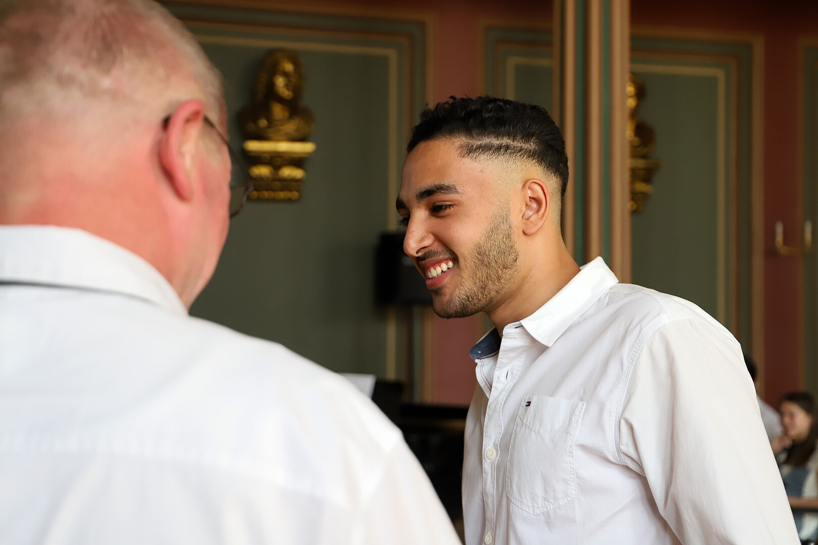 Im Bürgersaal des Zittauer Rathauses herrscht eine ausgelassene, freudige Stimmung. 46 junge Menschen aus 16 verschiedenen Ländern haben sich schick gemacht und sind voller Stolz auf einen besonderen Moment gespannt: die Zeugnisausgabe des Studienkollegs der Hochschule Zittau/Görlitz. Obwohl der Bürgersaal bereits Schauplatz vieler feierlicher Veranstaltungen war, liegt heute etwas ganz Besonderes in der Luft. Die emotionale Atmosphäre spiegelt die Vielfalt der Kulturen der Kollegiat*innen wider. Diese gelebte Internationalität in unserer Dreiländerregion geht unter die Haut und berührt das Herz. Schnell wird klar: Die Vorbereitung dieser hochmotivierten jungen Menschen aus aller Welt auf ein Studium in Deutschland kann eine Antwort auf den Fachkräftemangel sein! Einige der Kollegiat*innen haben eine Flüchtlingsbiographie. Mit dem Studienkolleg bietet die Hochschule Zittau/Görlitz Menschen, die ihre Heimatregion verlassen müssen, eine echte Zukunftsperspektive.