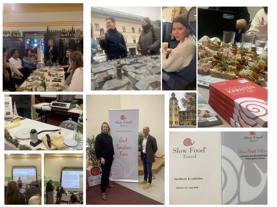 Im Biohotel Daberer in Kötschach-Mauthen standen ein Interview mit Eckart Mandler an, Projektleiter der weltweit ersten Slow Travel-Region. Er erläuterte die Anfänge und Entwicklungen dieser Bewegung sowie die Rolle der Zusammenarbeit zwischen verschiedenen Akteurinnen. Ergänzend wurden Gespräche mit Akteuren von Slow Food Kärnten und dem Verein „Genussland Kärnten“ geführt, die die Bedeutung regionaler Netzwerke und gemeinsamer Visionen betonten. Die Exkursion schloss mit einer historischen Führung durch die Burgenstadt Friesach, die die kulturelle Vielfalt Kärntens unterstrich.