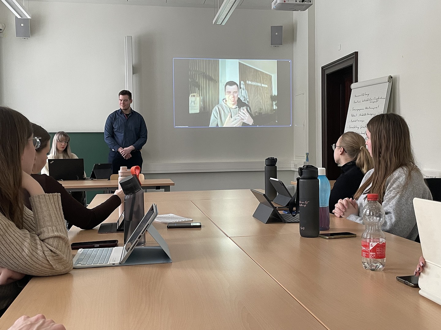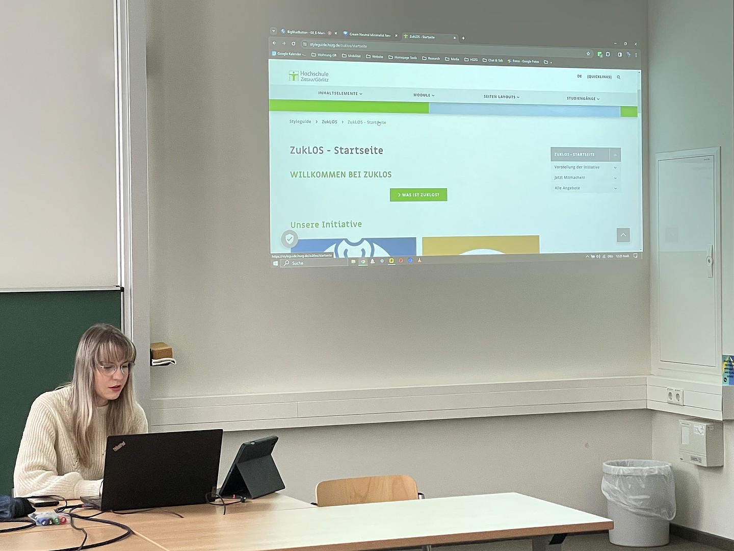 Nach Abschluss des zweitägigen ZukLOS-Workshops setzten die Studierenden ihre Arbeit im Rahmen ihrer Lehrveranstaltung E-Marketing fort. Dabei war ihr Auftrag, Ideen und konkrete Vorschläge für die Gestaltung der ZukLOS-Webseite zu entwickeln und diese in TYPO 3 umzusetzen. In der Projektarbeit nutzten die Studierenden aktiv ihre erworbenen Kenntnisse aus dem Modul „E-Marketing“, insbesondere im Bereich der strategischen Webseitenentwicklung. Am 18.01.2024 präsentierten die Studierenden stolz ihre Ergebnisse vor der Prorektorin für Bildung und Internationales, Frau Professorin Keil, Herrn Tiller vom ZukLOS-Team, ihrem Dozenten Herrn Benad und Collective Brain und reflektierten gemeinsam den Lern- und Arbeitsprozess abschließend.