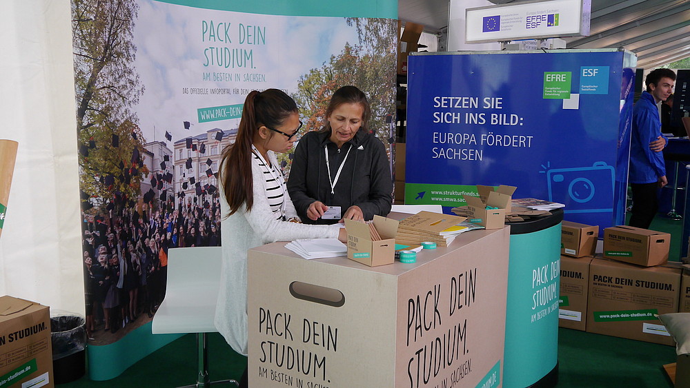 Das Thema Studium interessierte Besucher aus ganz Deutschland. Sie nutzten die Informationsmöglichkeiten im Festzelt der Sächsischen Staatsregierung.