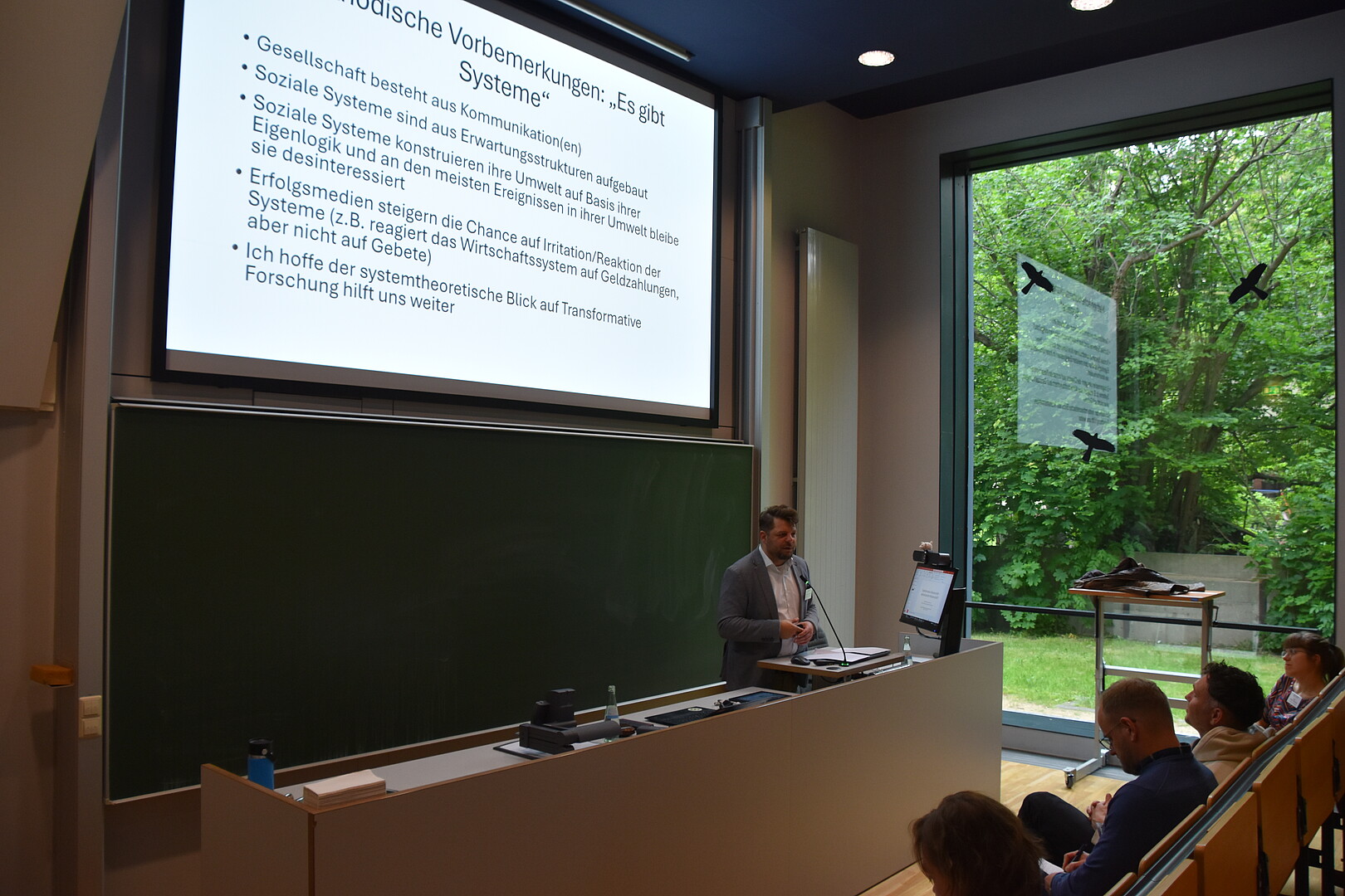Den Auftakt der Tagung bildete eine Doppelkeynote von Dr. Stefan Schweiger und Dr. Jan-Peter Voß. Stefan Schweiger verwies aus systemtheoretischer Sicht auf immanente Logiken und auf Grenzen des Transfer-Anspruchs. Jan-Peter Voß griff den Disput um transformative und nicht transformative Wissenschaft auf und plädierte für eine differenzierte(re) Sicht auf unterschiedliche politische Verfasstheiten, die jeweils mit einem transformativen Wissenschaftsverständnis korrespondieren. Der Abend klang bei einem gemeinsamen Essen in der Obermühle aus, mit reichlich Gelegenheiten für informellen Austausch und Vernetzung.